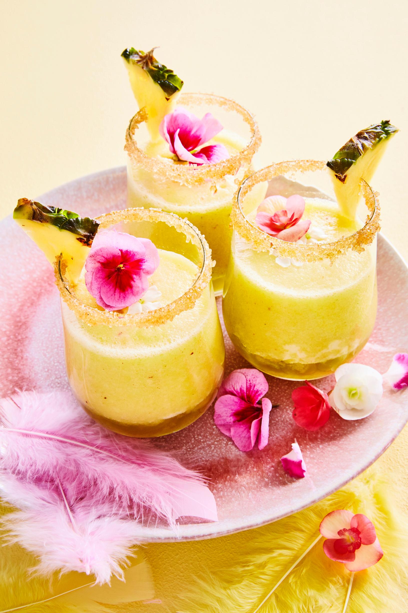 Ananaksesta, basilikanlehdistä, limen mehusta ja vaaleasta rommista valmistuva ananas-rommifizz on täydellinen juoma pääsiäiseksi tai muihin juhlaviin hetkiin. Värikäs drinkki koristellaan syötävillä kukilla.
