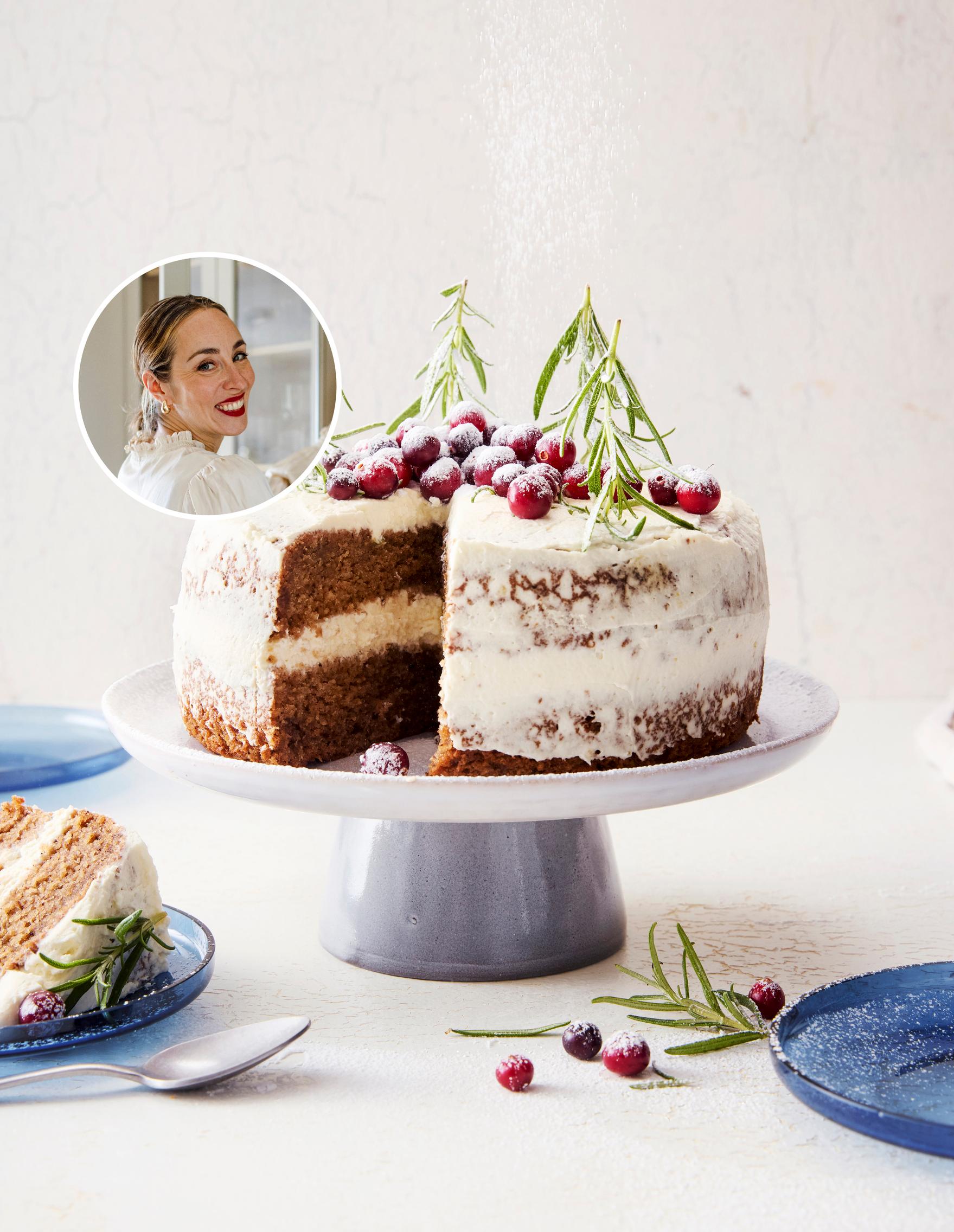- Koristele rosmariininoksilla ja karpaloilla. Ripottele tomusokeria pinnalle – kuin lunta kakun päälle.