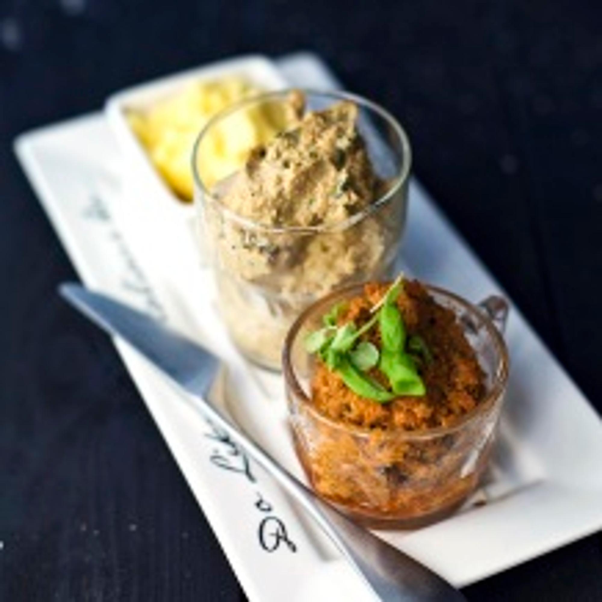3. Lisää siementen ja sipulin joukkoon valutetut aurinkokuivatut tomaatit, basilikanlehdet, öljy ja sitruunanmehu. Soseuta tasaiseksi tahnaksi. Notkista tarvittaessa tilkalla vettä.