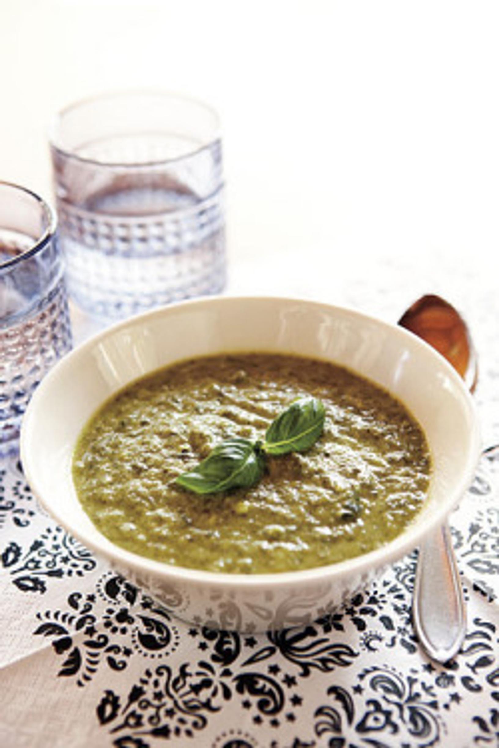 Kuullota silputut sipulit öljyssä. Lisää kuuma kasvisliemi ja pinaatti. Anna keiton kiehua 10 minuuttia. Lisää pilkottu avokado ja limetin mehu sekä basilika. Jatka kypsentämistä toiset 10 minuuttia. Soseuta keitto. Lisää kerma ja kuumenna, älä keitä. Mausta suolalla ja pippurilla. Cayennenpippuri täydentää kivasti avokadon makua. Raasta halutessasi päälle hieman parmesaania.