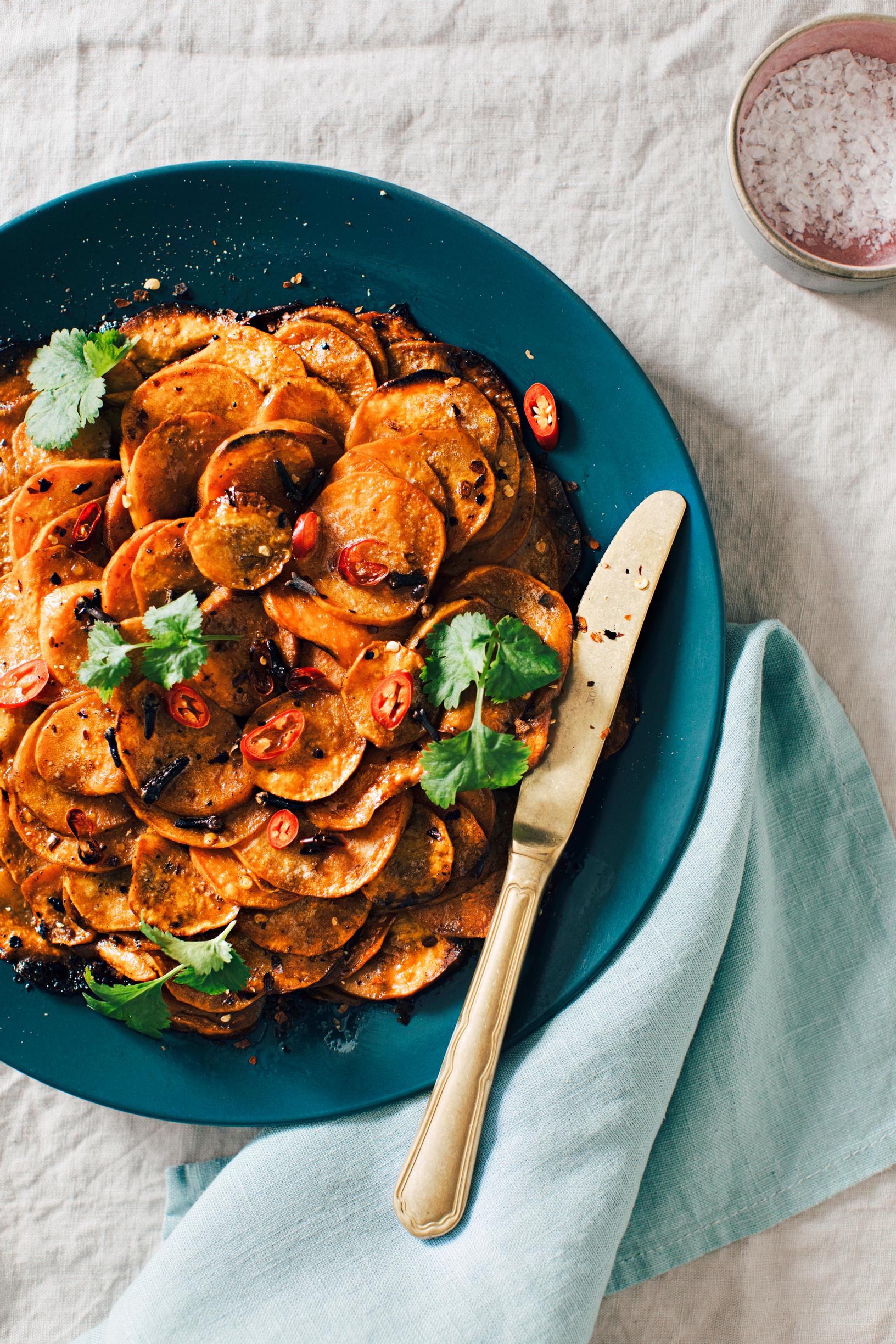 Tässä tulee bataattilaatikko 2.0! Valmista klassikkoherkku vaihteeksi viipaloidusta juureksista kokoamalla se rennosti pyöreän galeten muotoon pellille. Bataattiviipalepelti tarjoaa myös sopivasti purutuntumaa ja chilin potkua.