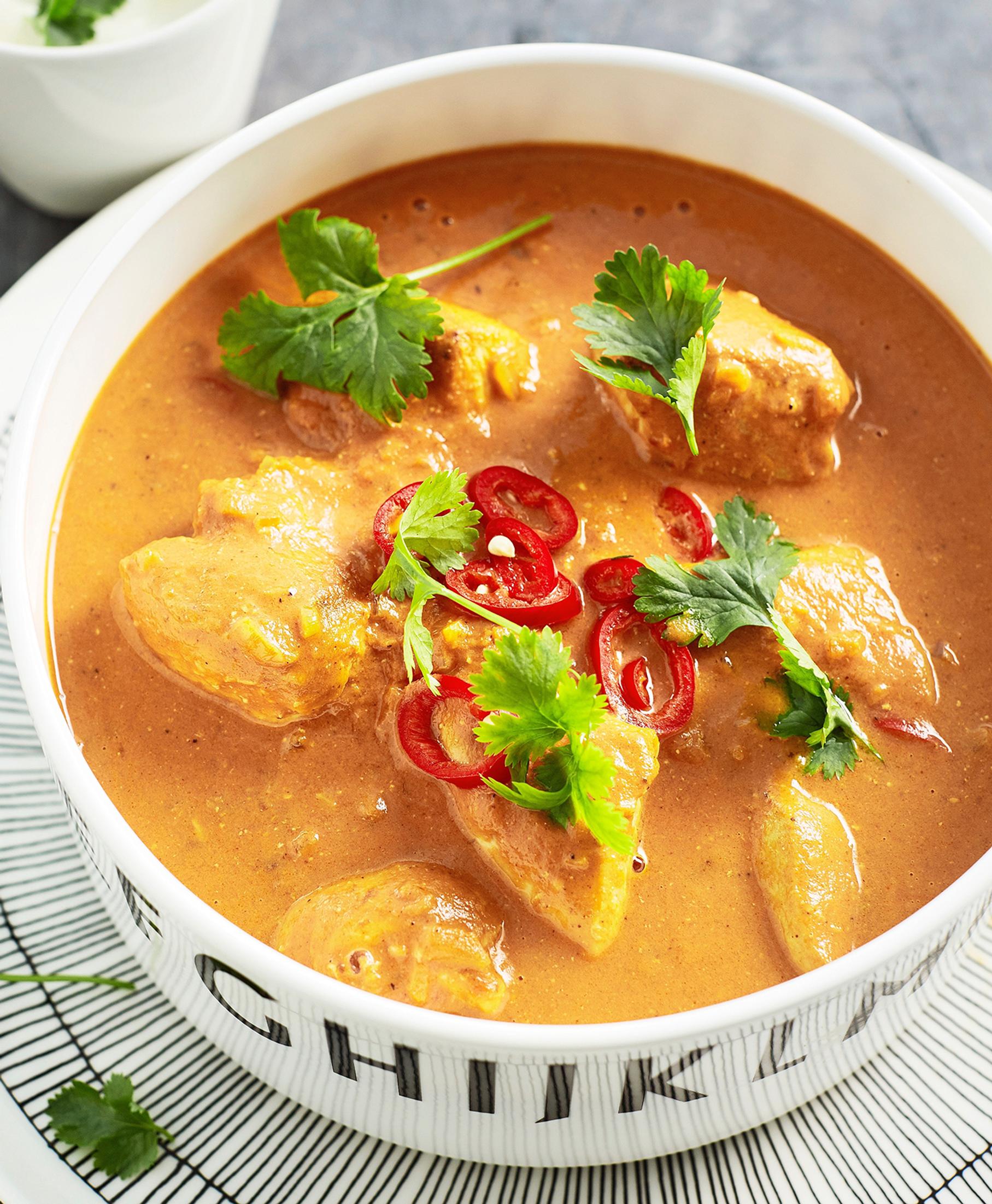 Butter chicken kuuluu intialaisen keittiön klassikkoruokiin. Marinoidut broileripalat ruskistetaan pannulla ja yhdistetään mausteiseen tomaattikastikkeeseen.