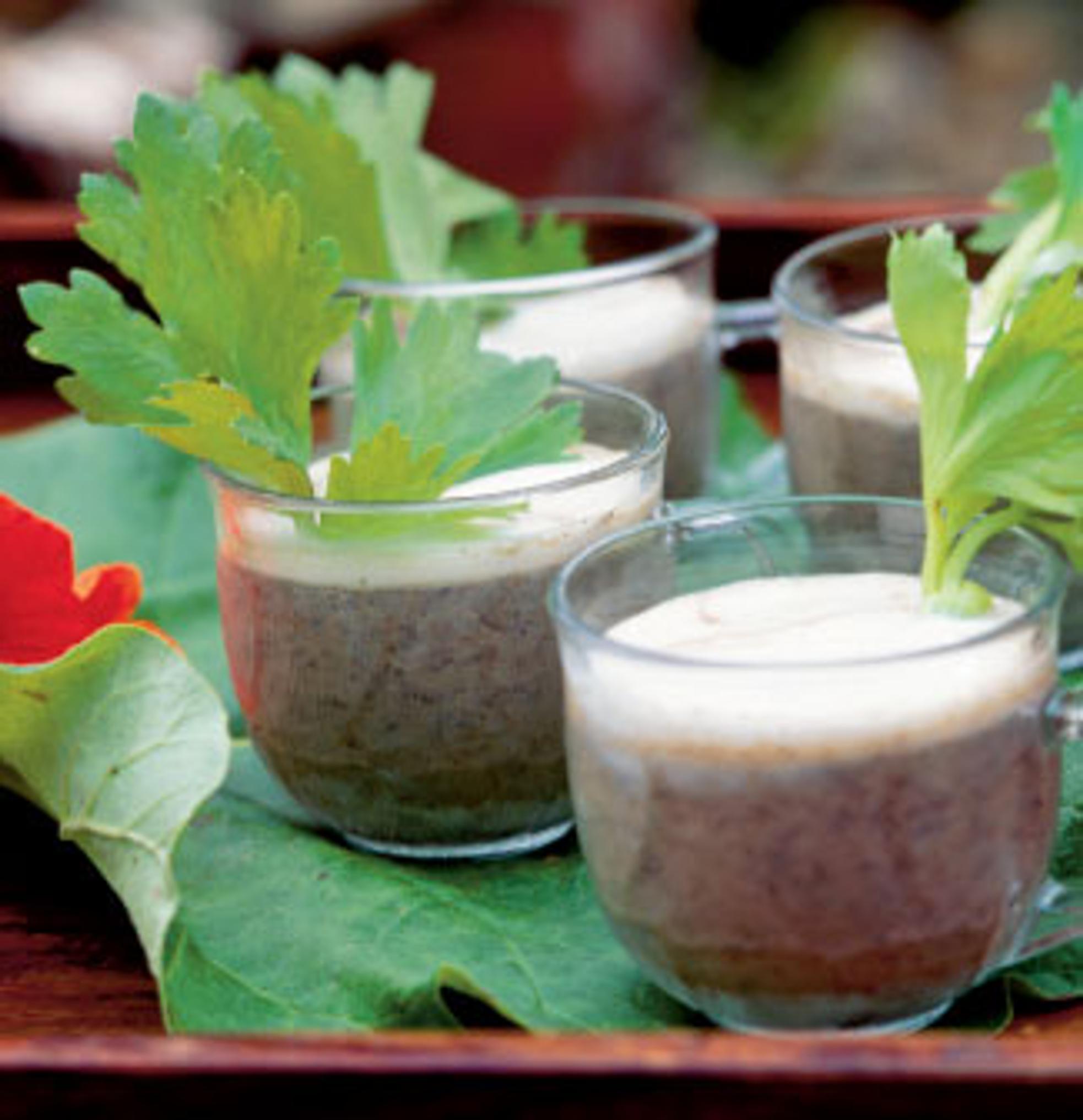 Somista torvisienicappuccinot sellerillä. Tarjoa cappuccinot heti.