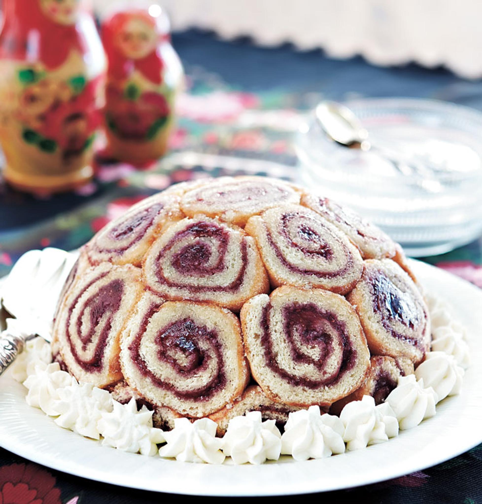 Charlotte russen juuret löytyvät venäläisestä keittiöstä. Herkullinen kääretortusta ja kermahyytelöstä valmistettu kakku saa tässä reseptissä ihanan vadelmatäytteen.