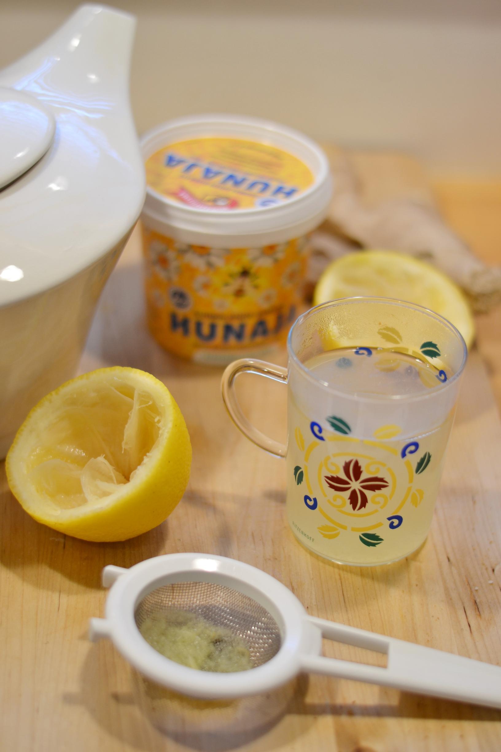 Mittaa ainekset teekannuun. Käytä tuoretta inkivääriä 1-2 rkl riippuen siitä miten vahvaa juomasta haluat. Käytä hunajaa 1-2 rkl riippuen siitä miten makeaa juomasta haluat. Kaada kiehuva vesi kannuun ja sekoita hyvin. Anna flunssajuoman tekeytyä noin 10 minuuttia. Siivilöi juoma teemukeihin