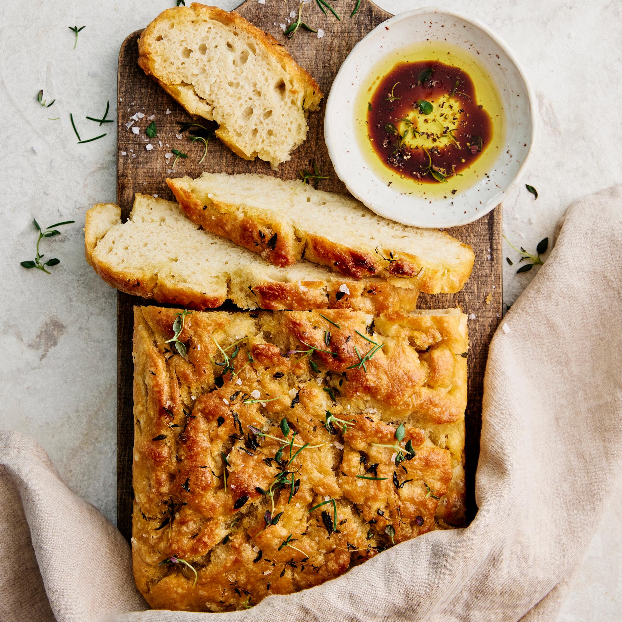 Vaihtele yrttejä ja käytä viimeistelyyn vaikka salviaa tai oreganoa. Focaccia-taikinan pinnalle voi painella kivettömiä kalamataoliiveja, uunipaahdettuja tai aurinkokuivattuja kirsikkatomaatteja, kapriksia, pilkottuja artisokansydämiä tai valkosipuliviipaleita.
