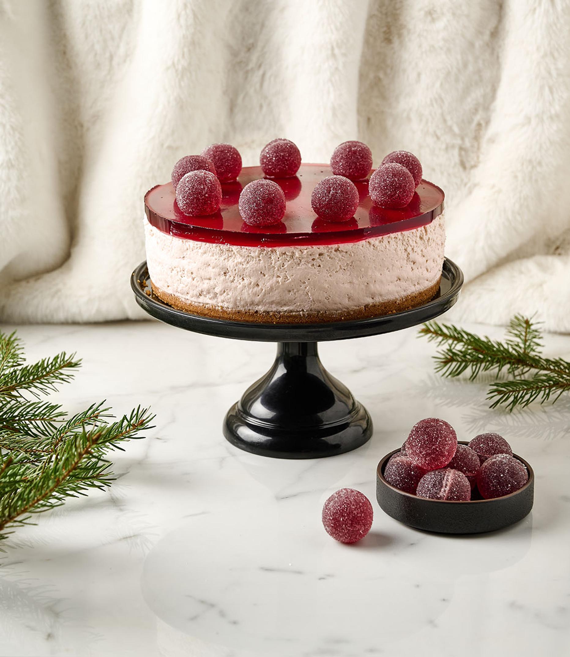 Glögikuula-juustokakku, jonka jujuna on piparipohja ja reilu tujaus glögiä – sesongin hittikakku!