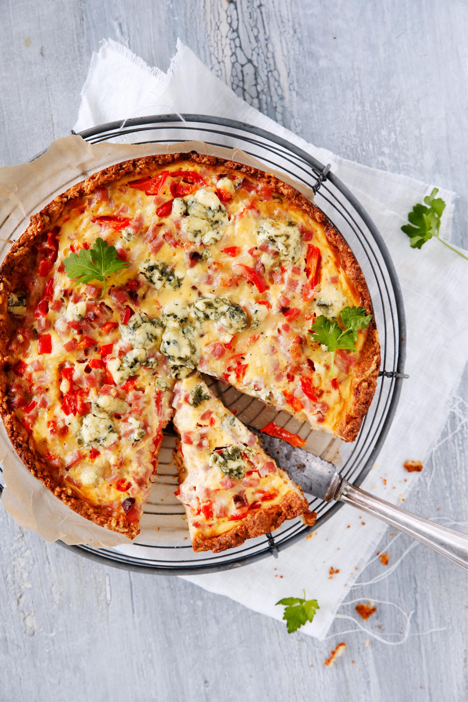 - Levitä täyte piirakkapohjan päälle. Murenna päälle sinihomejuusto. Jatka gluteenittoman kinkkupiirakan paistamista uunin keskitasolla 25–30 minuuttia, kunnes täyte on saanut kauniin värin.