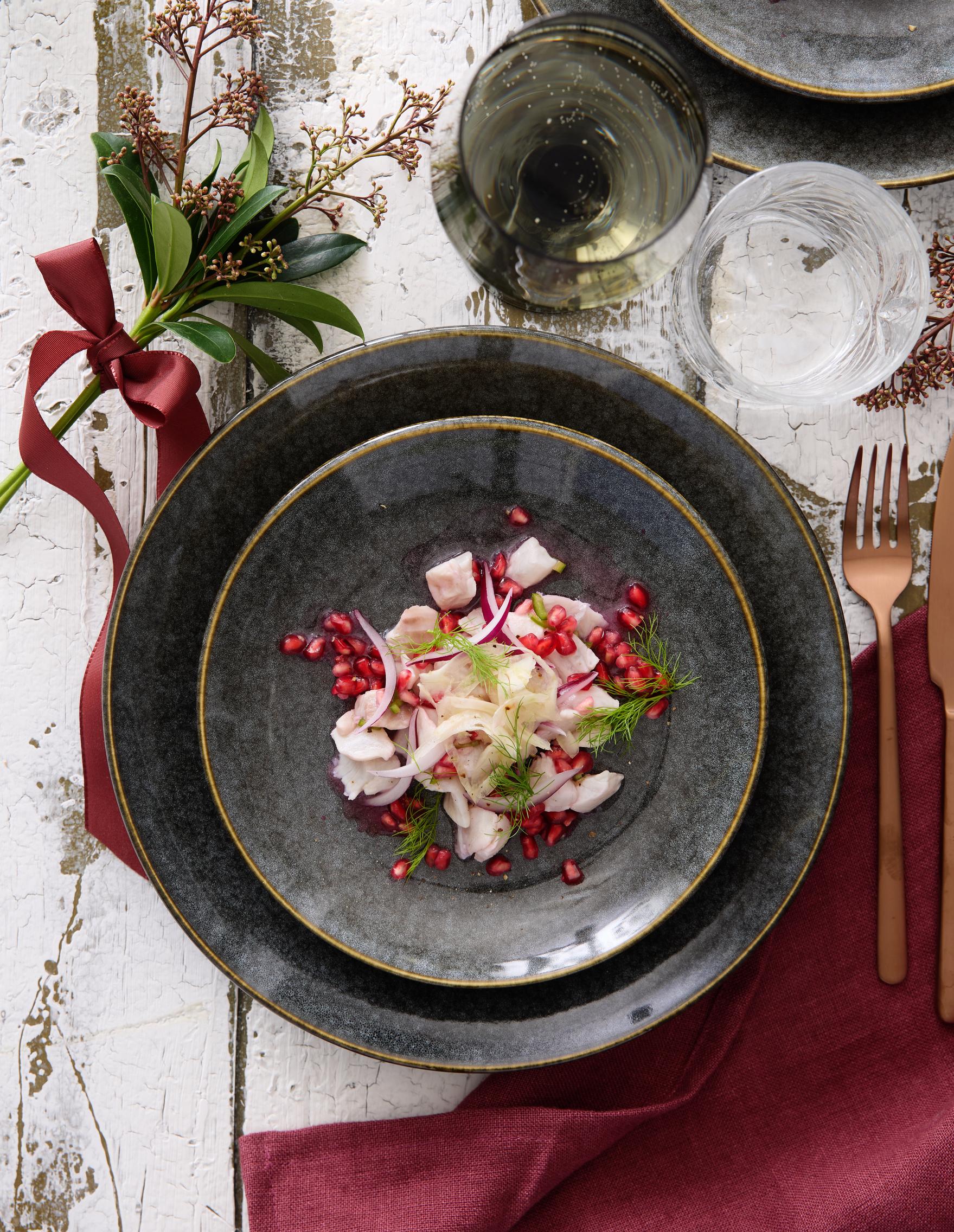 Granaattiomena-siikaceviche on joulun kalapöydän uusi herkku