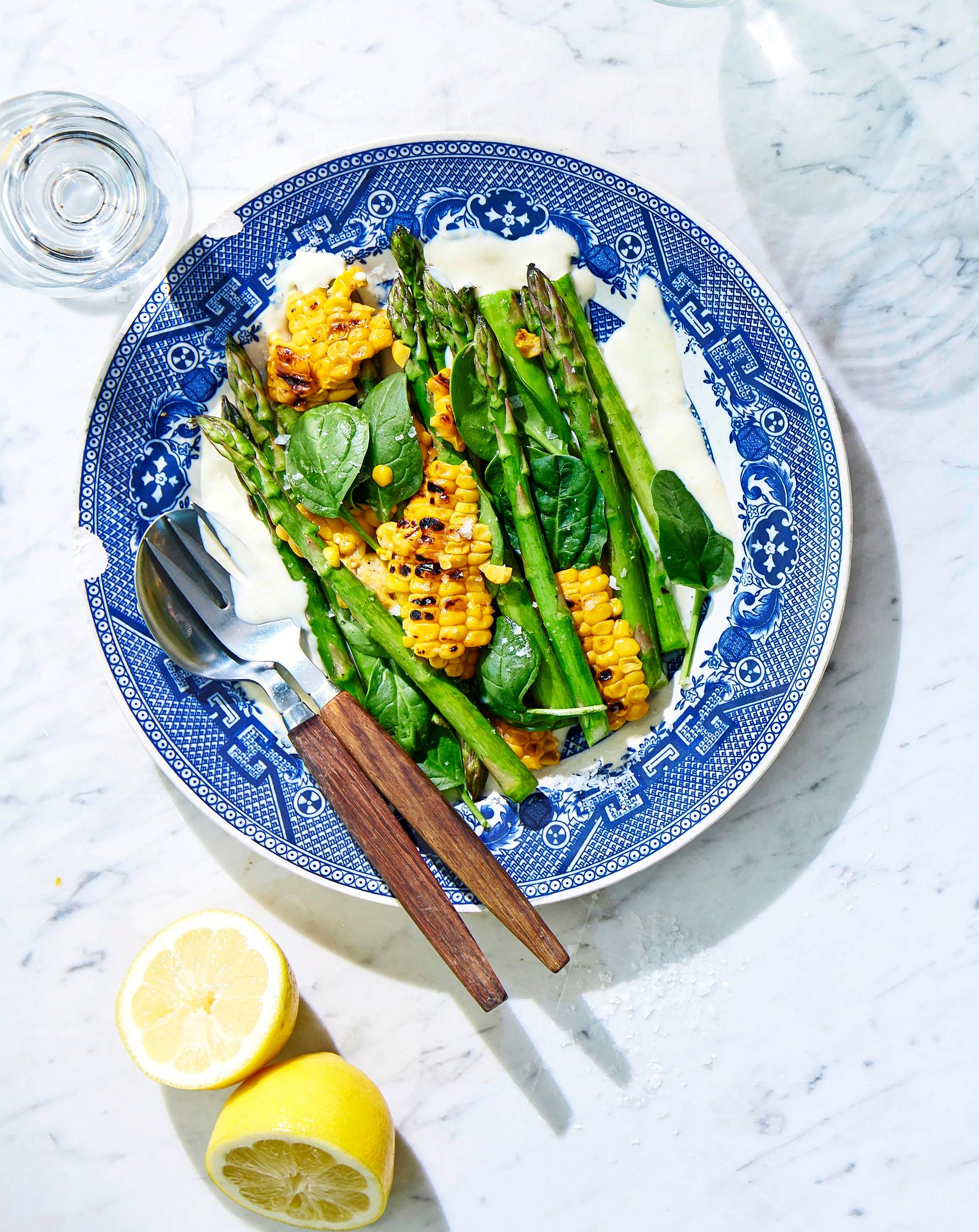 Lastaa grillatut parsat ja maissit kirpeän sitruunaisen aiolin päälle. Raikas kasvislisuke toimii erityisesti grillatun tofun, kalan ja äyriäisten kanssa.