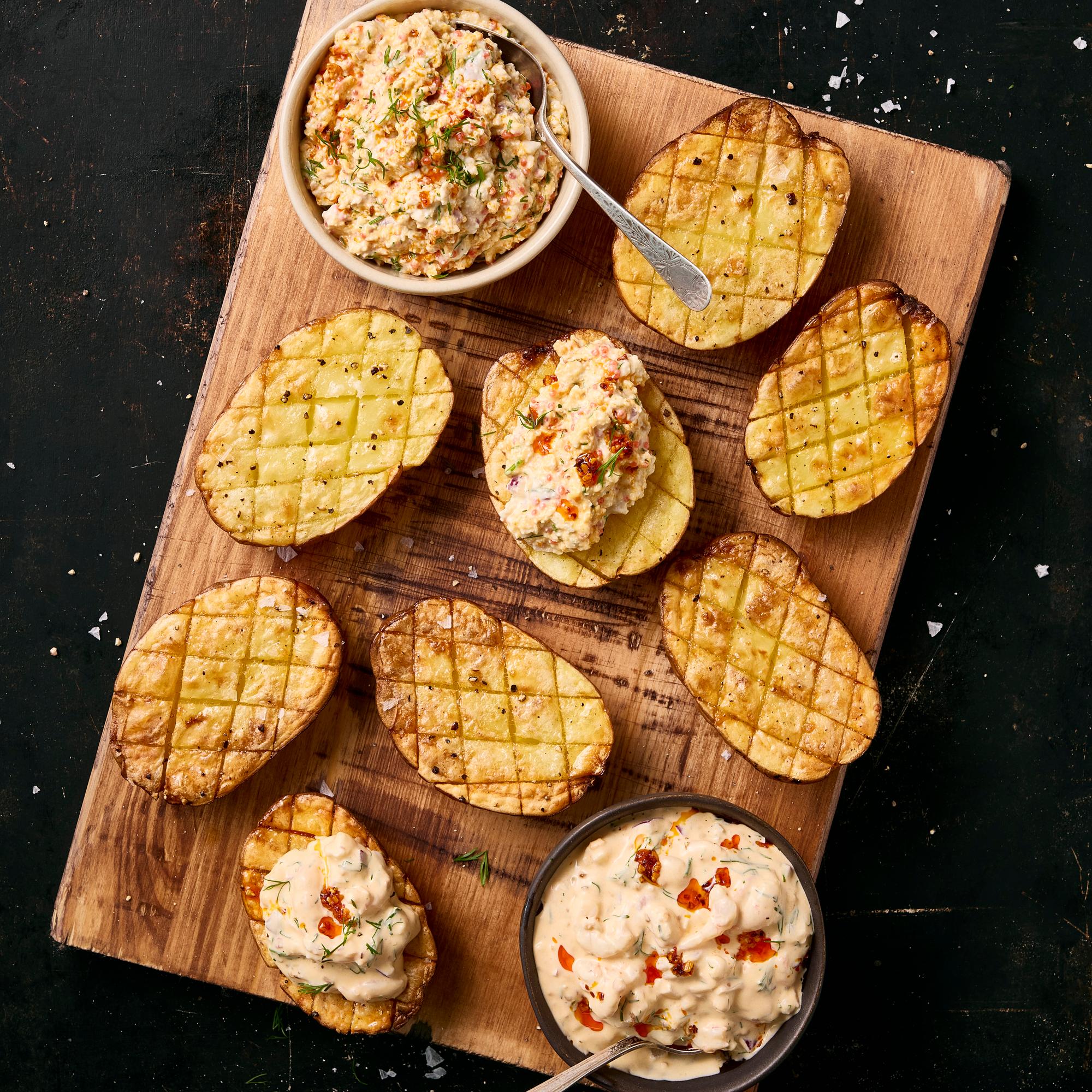 Tee halkaistuiden uuniperunoiden lisukkeeksi katkarapuskagenia rapealla chilillä tai tofuskagenia rapealla chilillä.