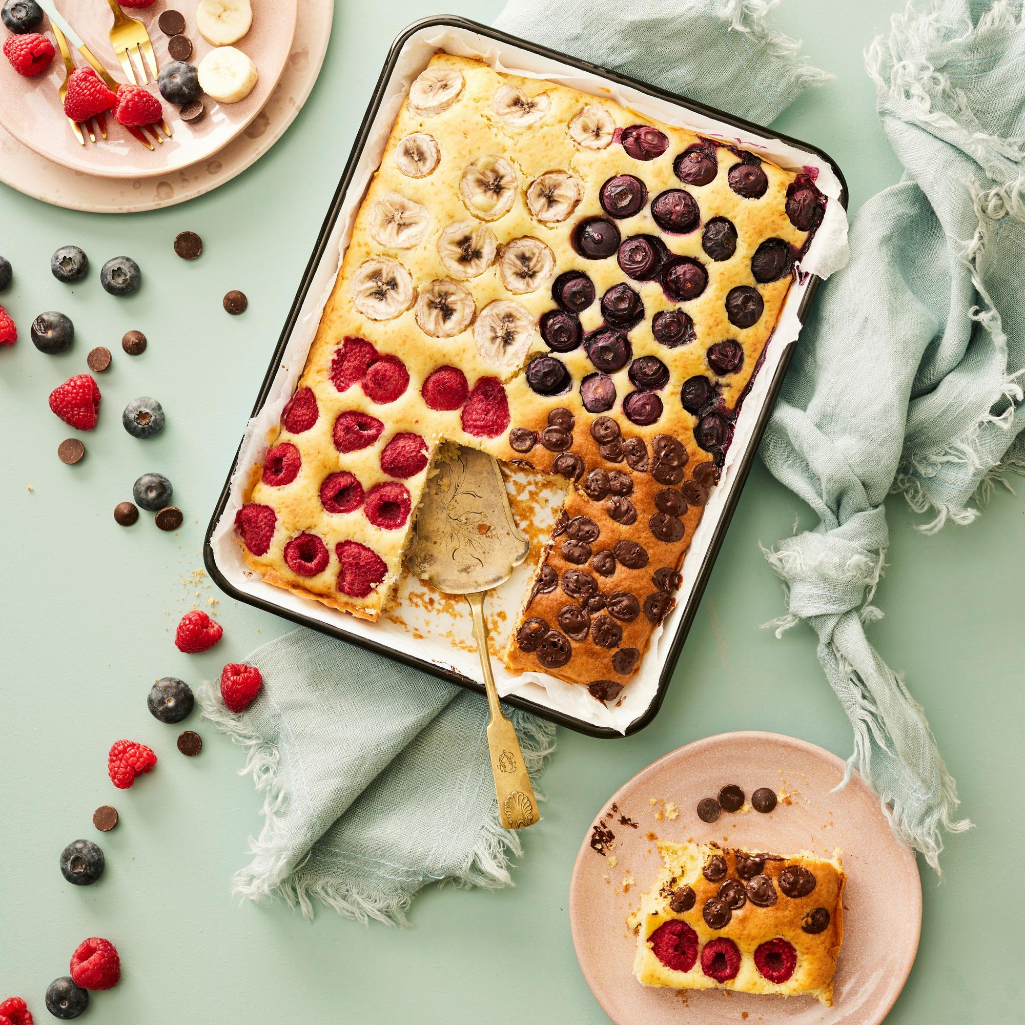 Hyödynnä leivonnaiseen jogurtin lisäksi hedelmävadin viimeiset yksilöt ja pakastemarjojen pussinpohjat.