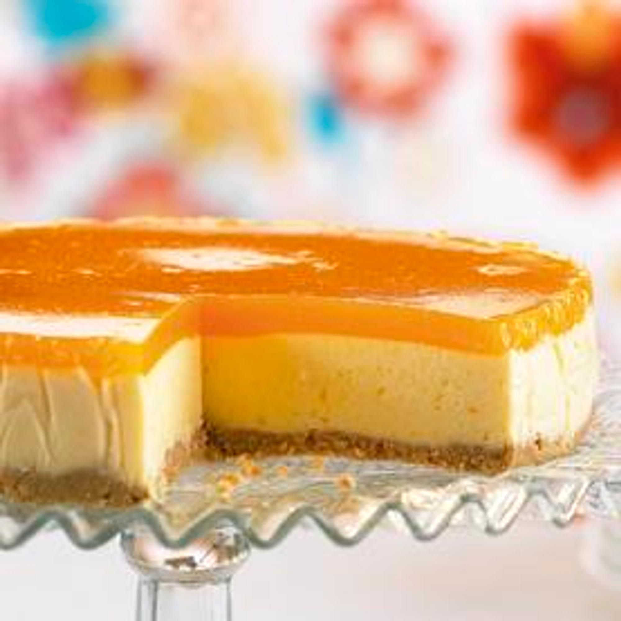 Helppo mangojuustokakku valmistuu ilman uunia. Raikkaan ja täyteläisen kakun täytteessä yhdistyvät vaniljajogurtti, tuorejuusto ja kerma. Mangoa lisätään hedelmäviipaleiden ja -mehun muodossa.