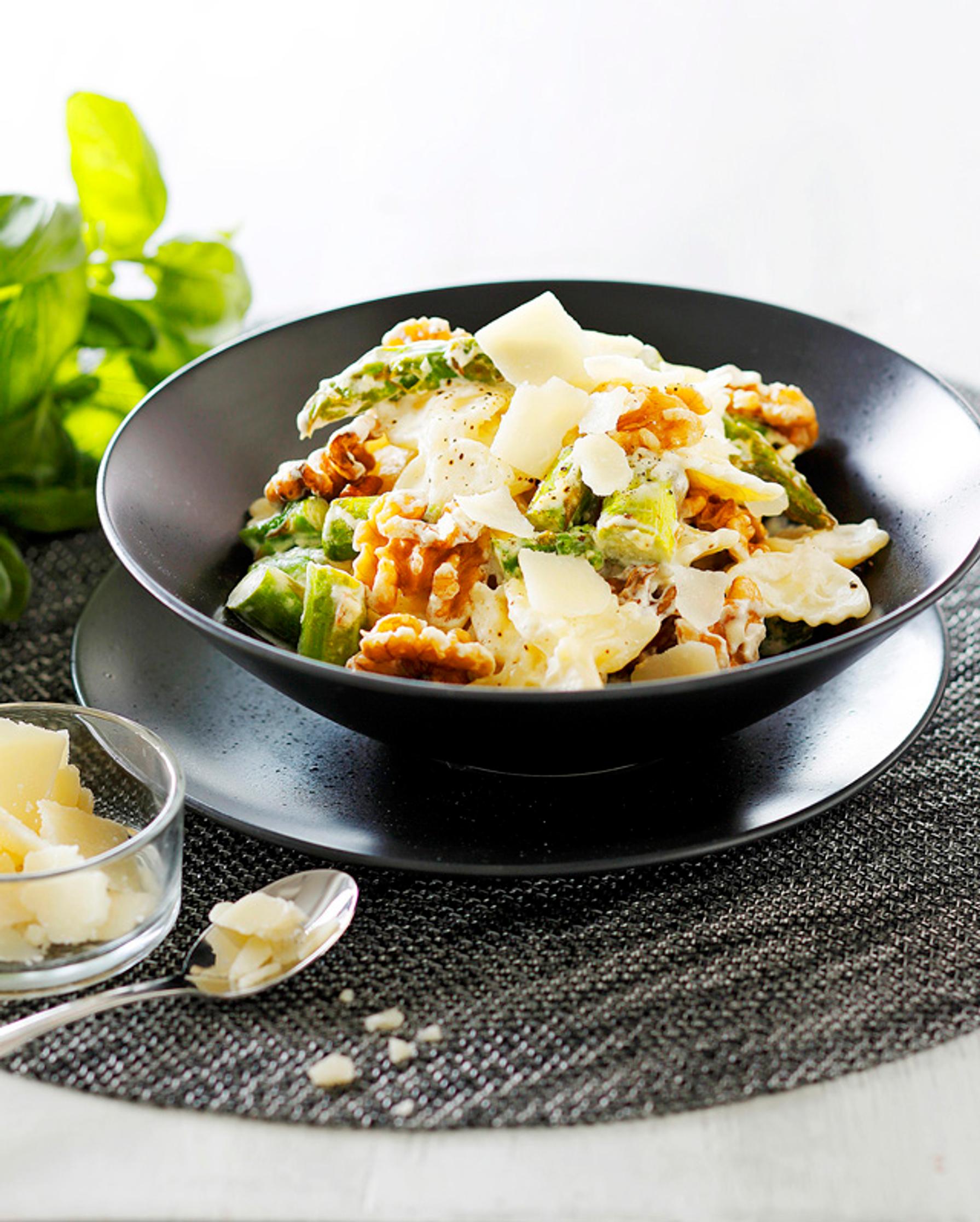 Tämä pähkinäinen parsapasta valmistuu vartissa. Kun sesonki on parhaimmillaan, parsaa kannattaa kokata myös arkena.