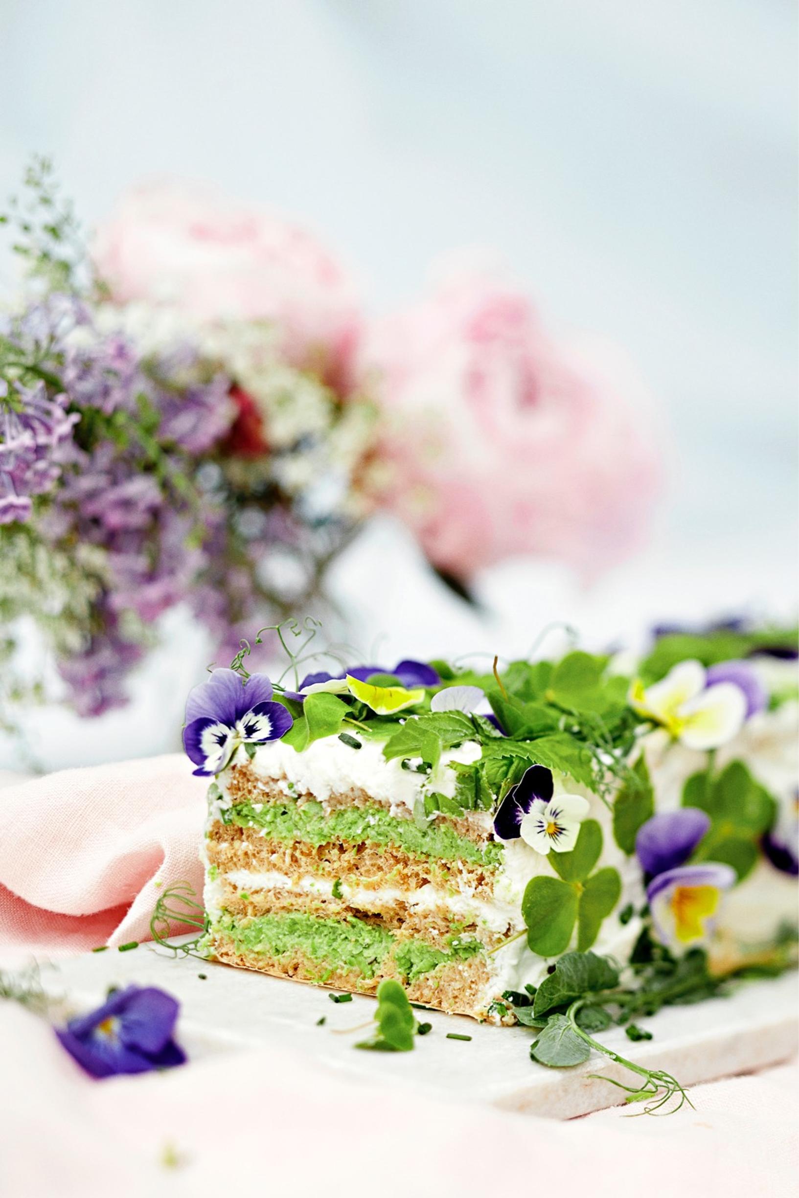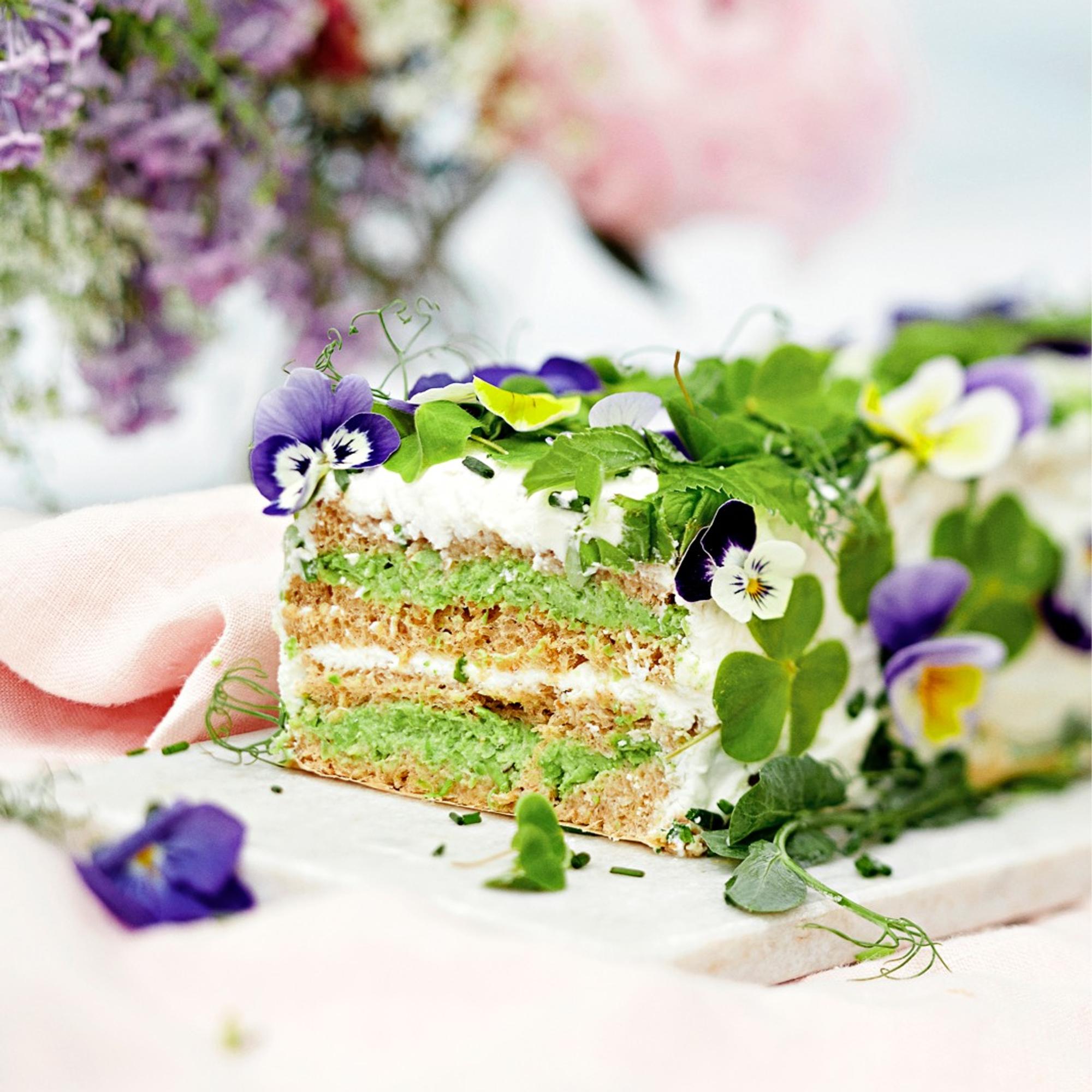 - Koristele kasvisvoileipäkakku ketunleivillä, ruohosipulisilpulla, herneenversoilla ja syötävillä kukilla.