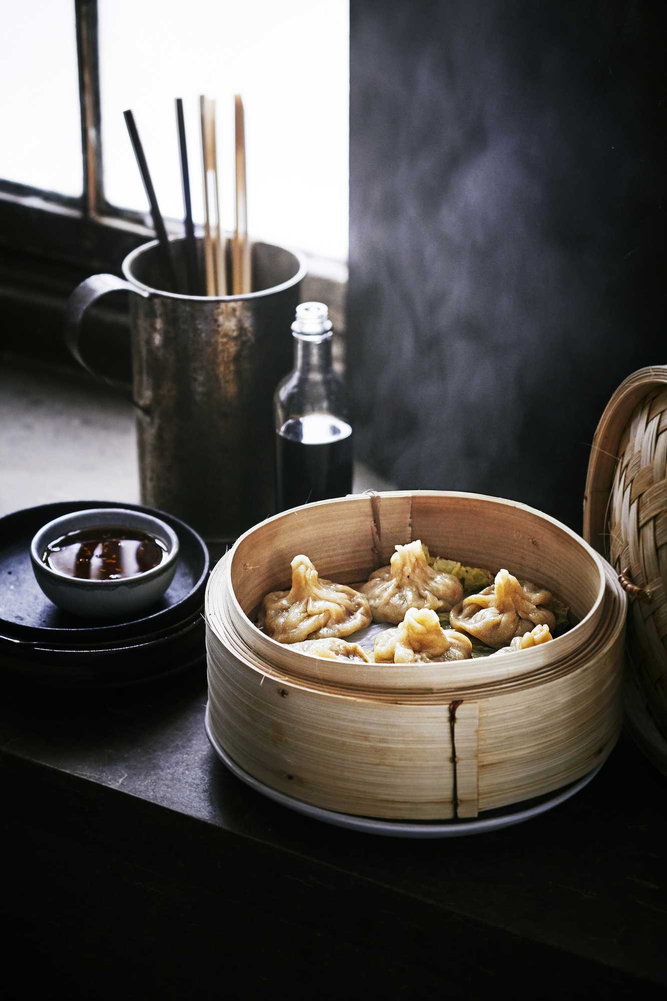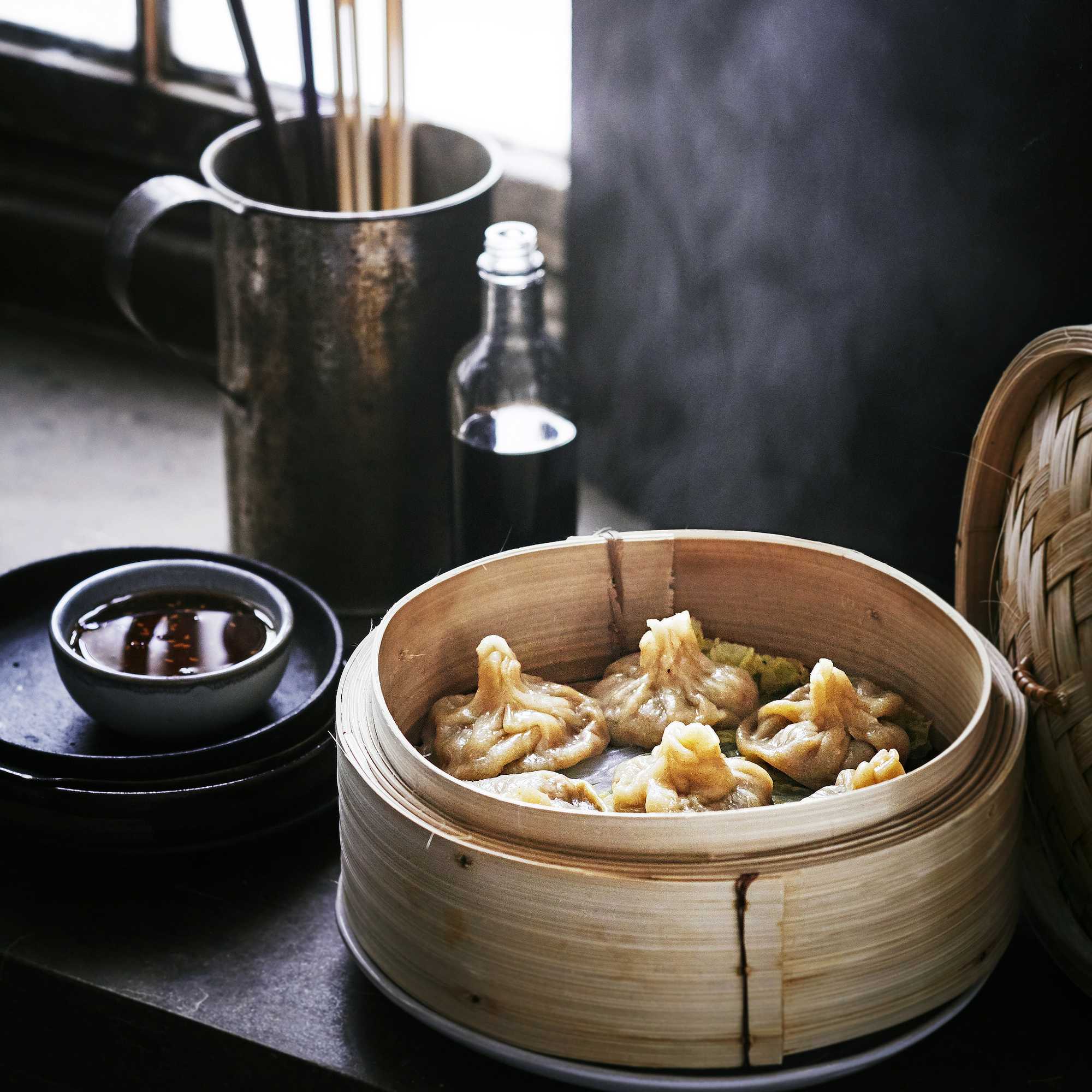 - Kuumenna sopivan kokoisessa kattilassa vettä ja nosta höyrytyskori kattilan päälle. Laita koriin kiinankaalinlehtiä tai rei’itetty leivinpaperi. Nosta dumplingit koriin ja sulje kansi. Höyrytä noin 7 minuuttia. Tarkista täytteen kypsyys leikkaamalla yksi dumpling auki.