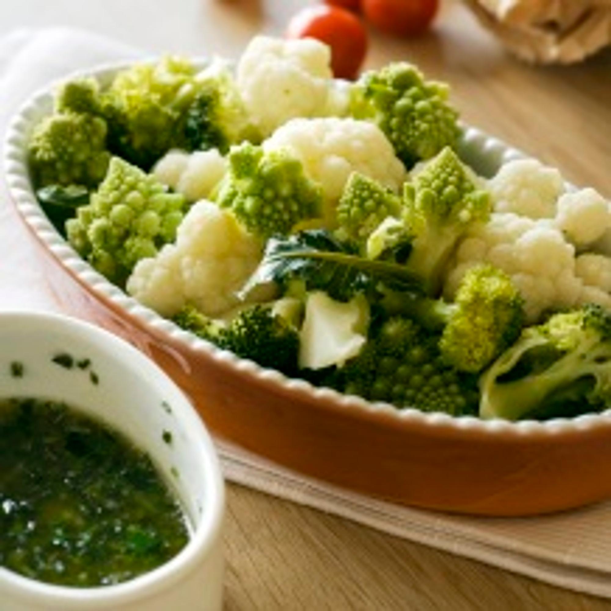 Höyrytetyt kukkakaalit ja yrttivoi