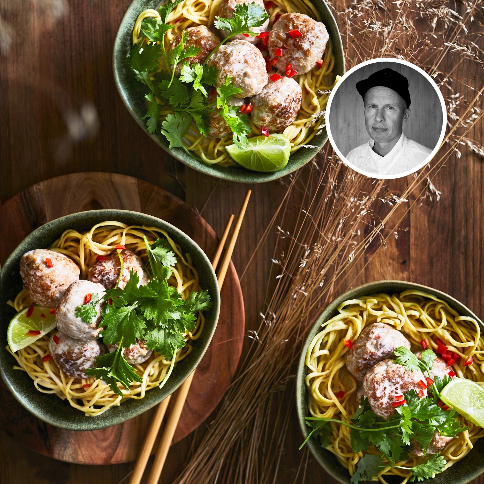 Jouni Toivanen kokkaa arkiruoaksi kookos-kanapullia. Pyörittele thaimausteisia broileripullia saman tien tuplasatsi, sillä niiden menekki on taattu! ”Broilerinjauhelihaa en ollut paljon aikaisemmin käyttänyt. Ensimmäisen kerran kanapullia kokeiltuani söin ne itse melkein kaikki. Sittemmin muutkin kotona ovat saaneet nauttia niitä”, Toivanen sanoo.