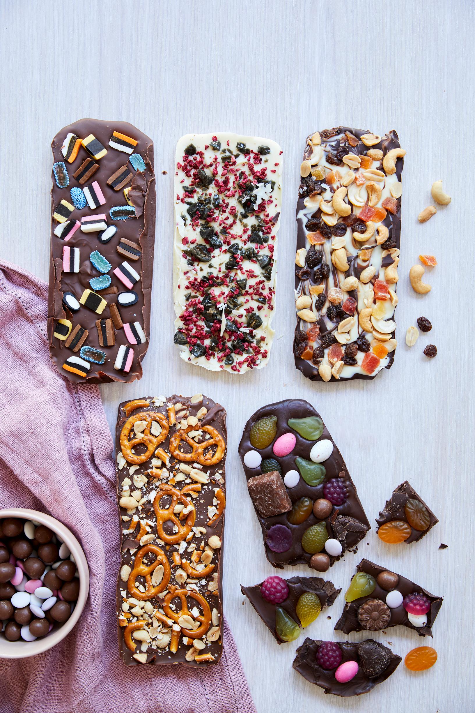 Itse tehty suklaalevy on helppo räätälöidä oman maun mukaan – sulata suklaa ja kuorruta se lempiherkuillasi