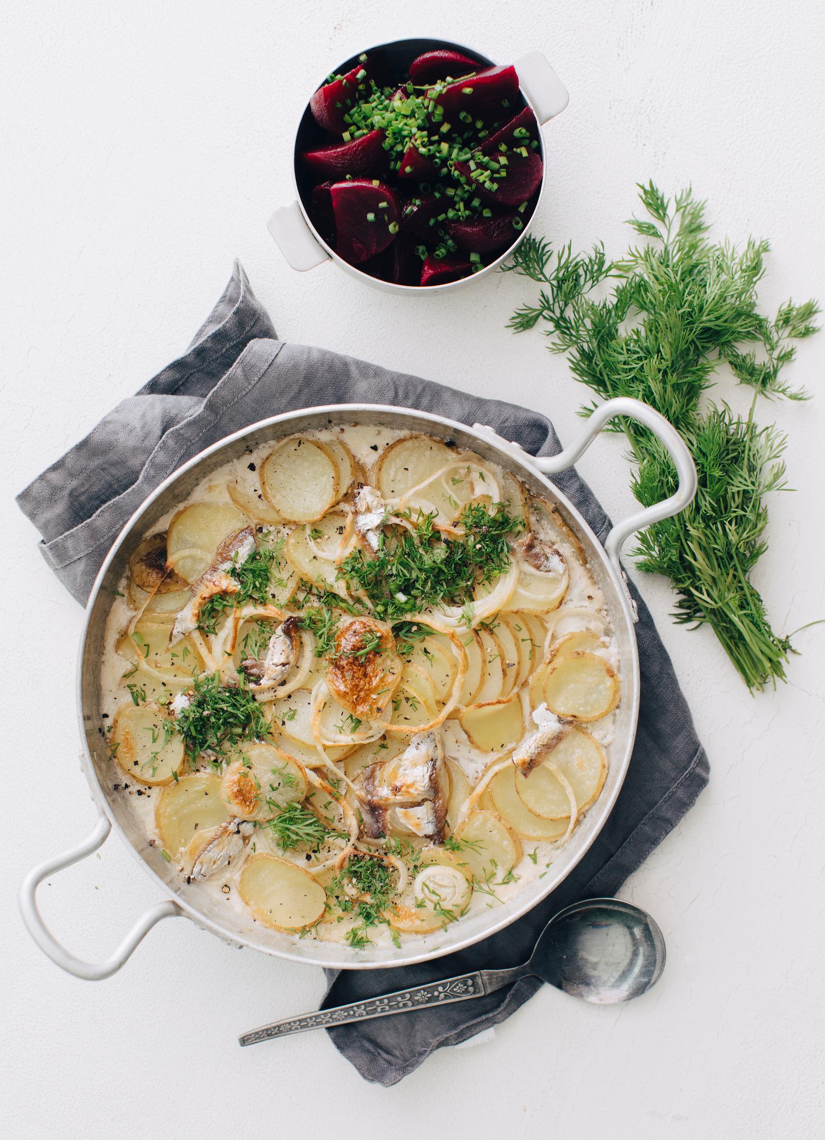 - Ripottele janssoninkiusauksen pinnalle tuoretta tilliä ja tarjoa etikkapunajuurten kanssa.