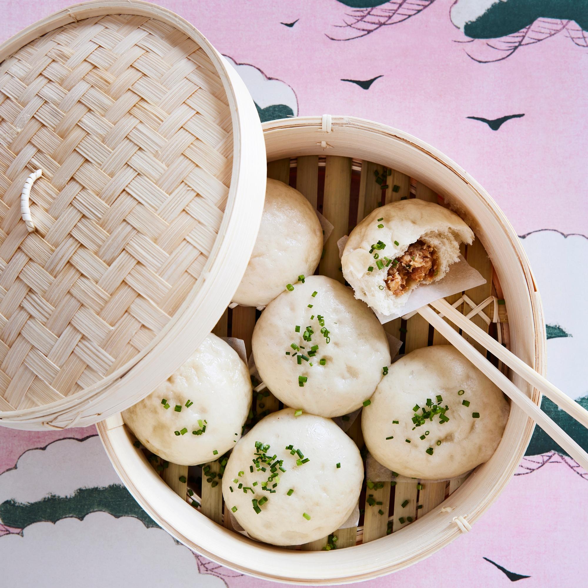 - Höyrytä sämpylät kypsiksi kiehuvan vesikattilan päällä 10–15 minuutin ajan. Koristele ruohosipulilla ja tarjoa kuumina.