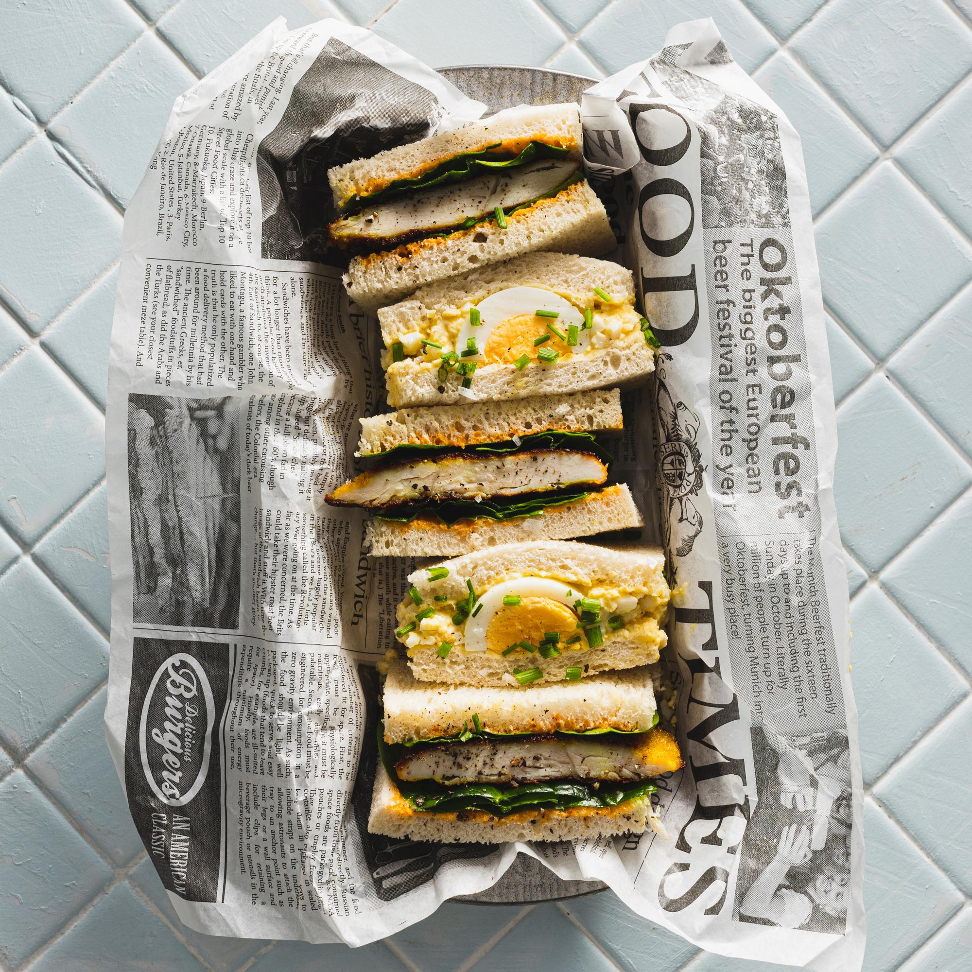 Japanilaiset sando-leivät ovat nousseet maailmanmaineeseen. Kokeile broileritäytteistä katsu sandoa tai kananmunatäytteistä tamago sandoa tai vaikka molempia!
