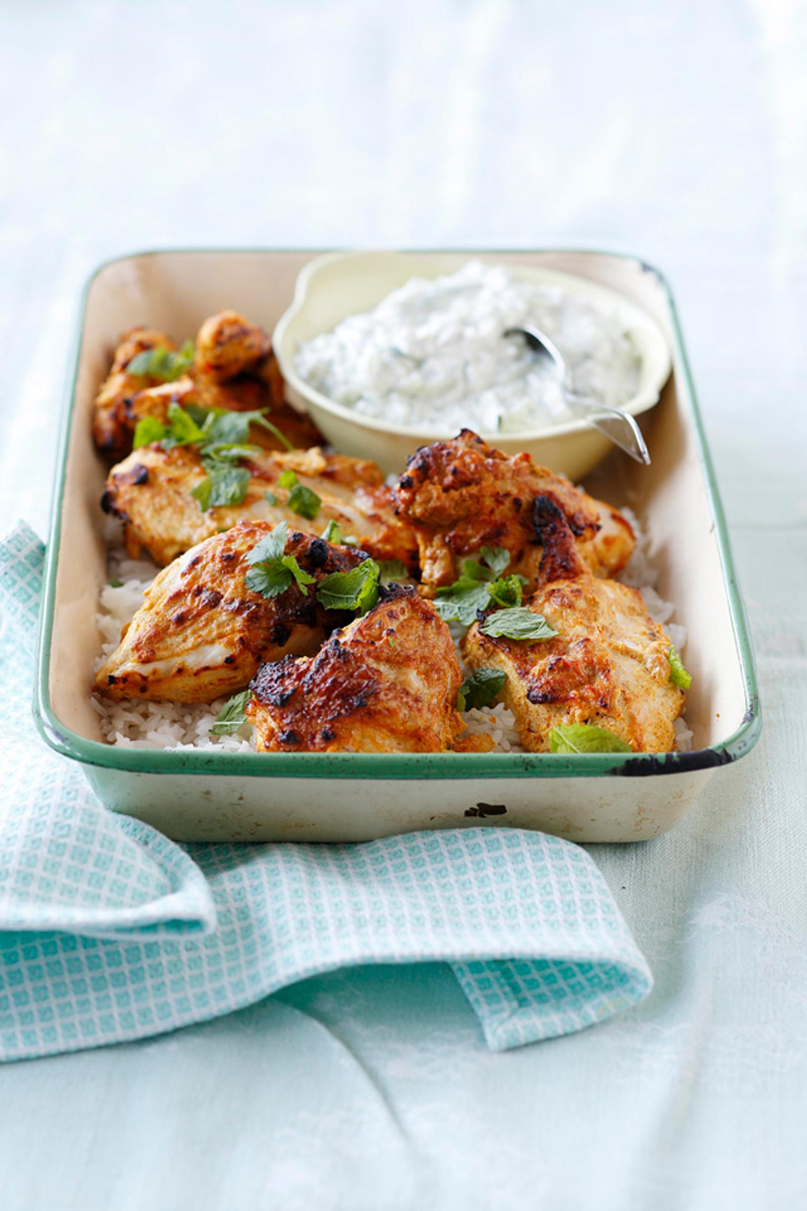 Jogurtti toimii sekä marinadina että raikkaana kastikkeena tässä herkullisen mausteisessa broileriruoassa.