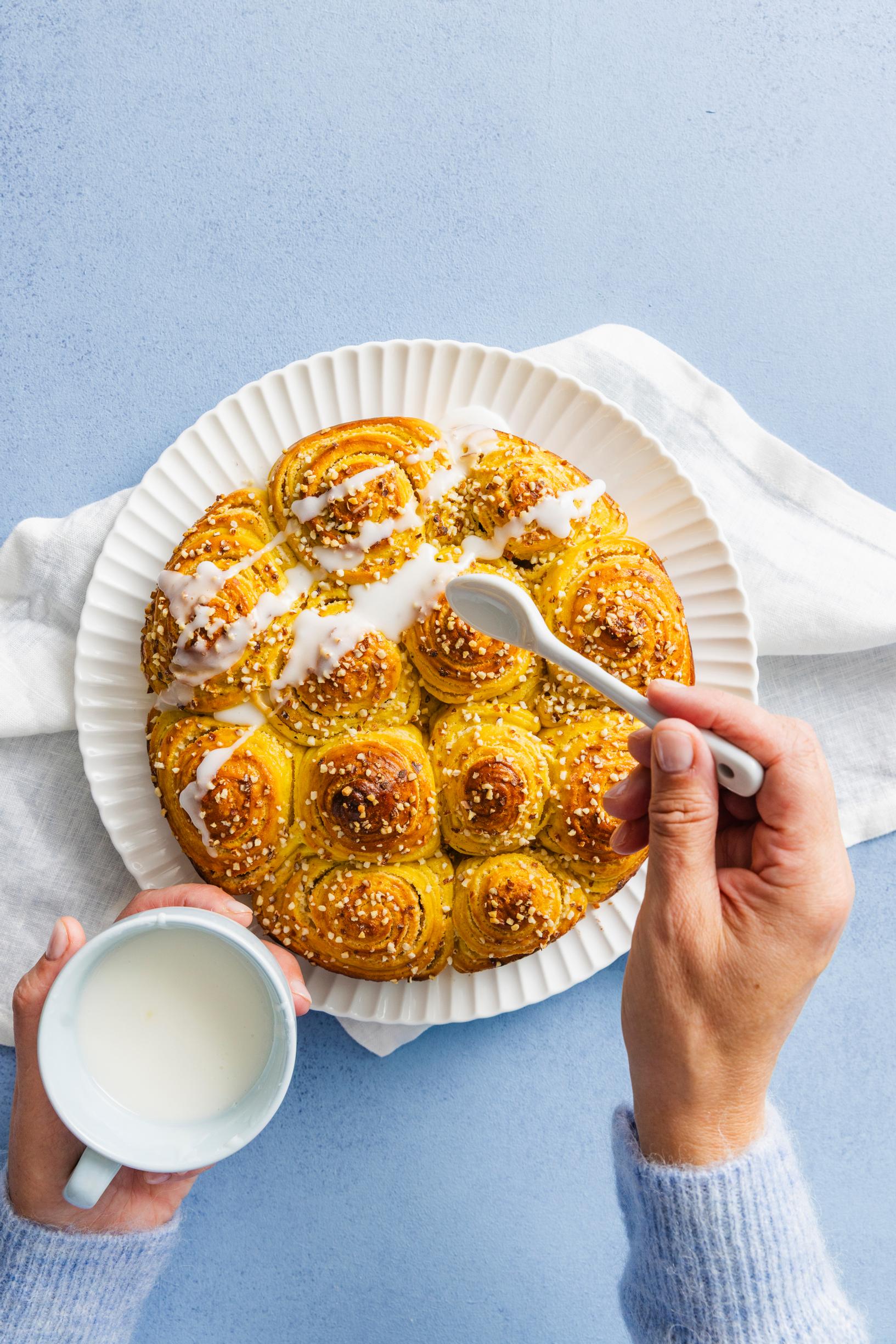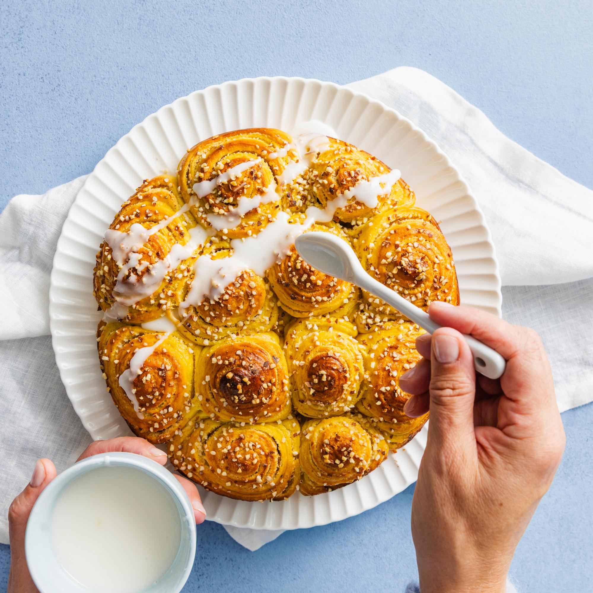 - Viimeistele jäähtynyt pulla tomusokerista ja maidosta tai vedestä sekoitetulla sokerikuorrutteella.