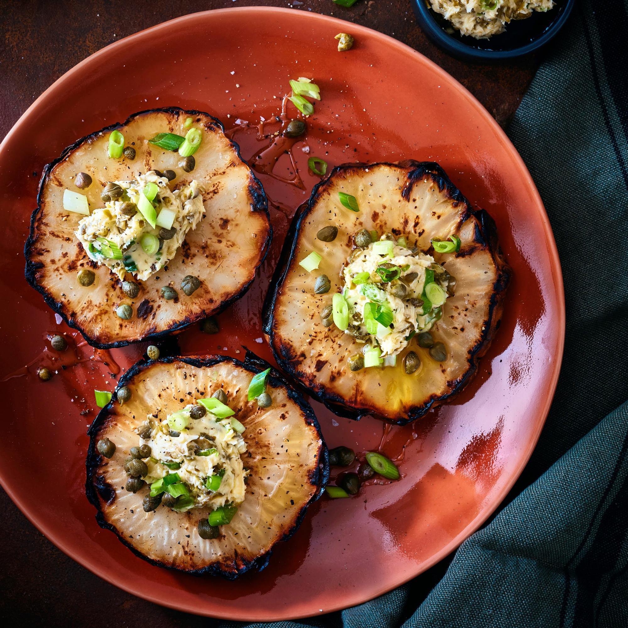 Maailman parhaat kasvispihvit? Paahteiset juuriselleripihvit tarjoillaan kirpeän kaprisvoin kera