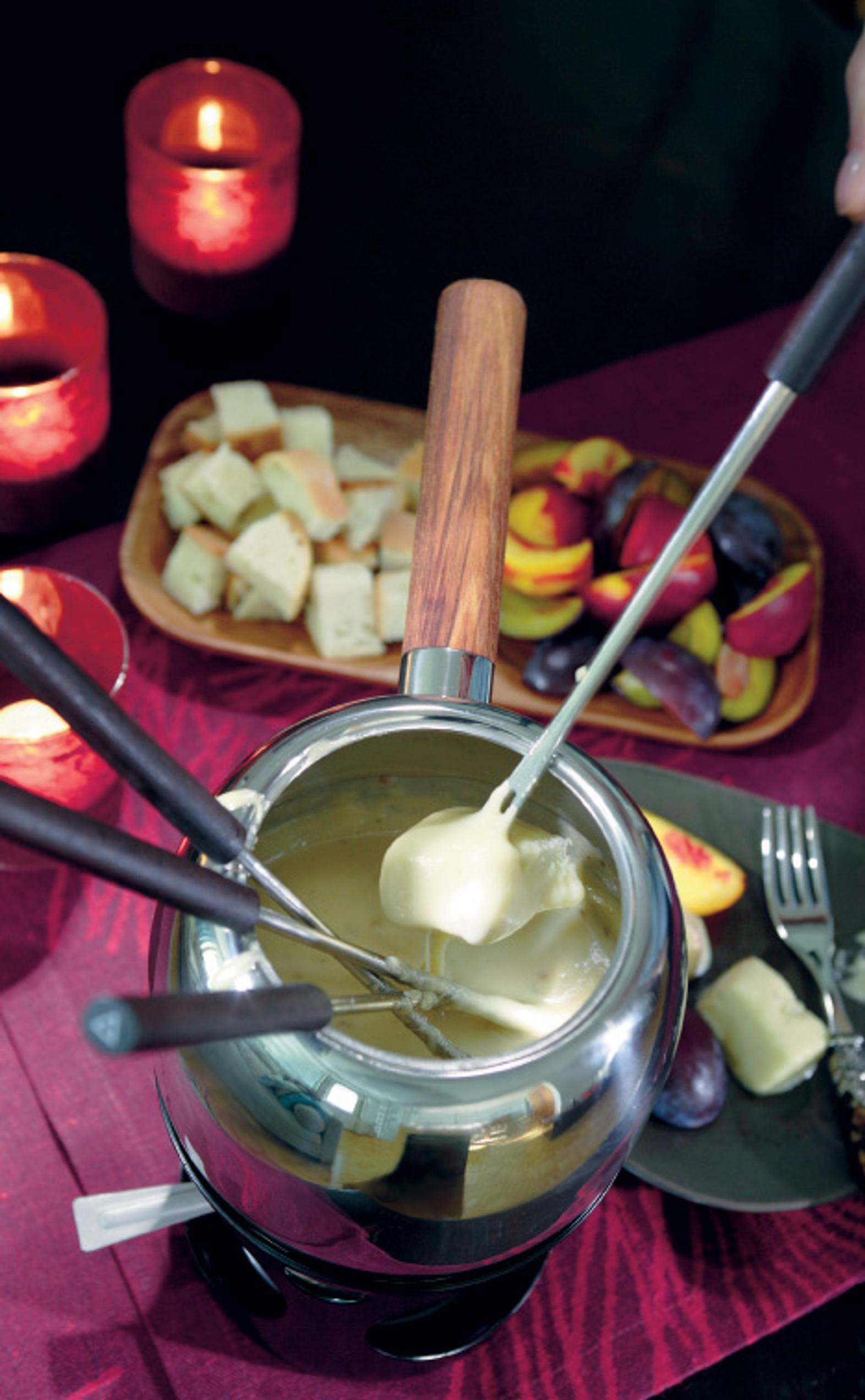 Valmista fondue pinnoitetussa kattilassa tai padassa liedellä. Siirrä valmiina pöytään lämpökynttiläalustalle.