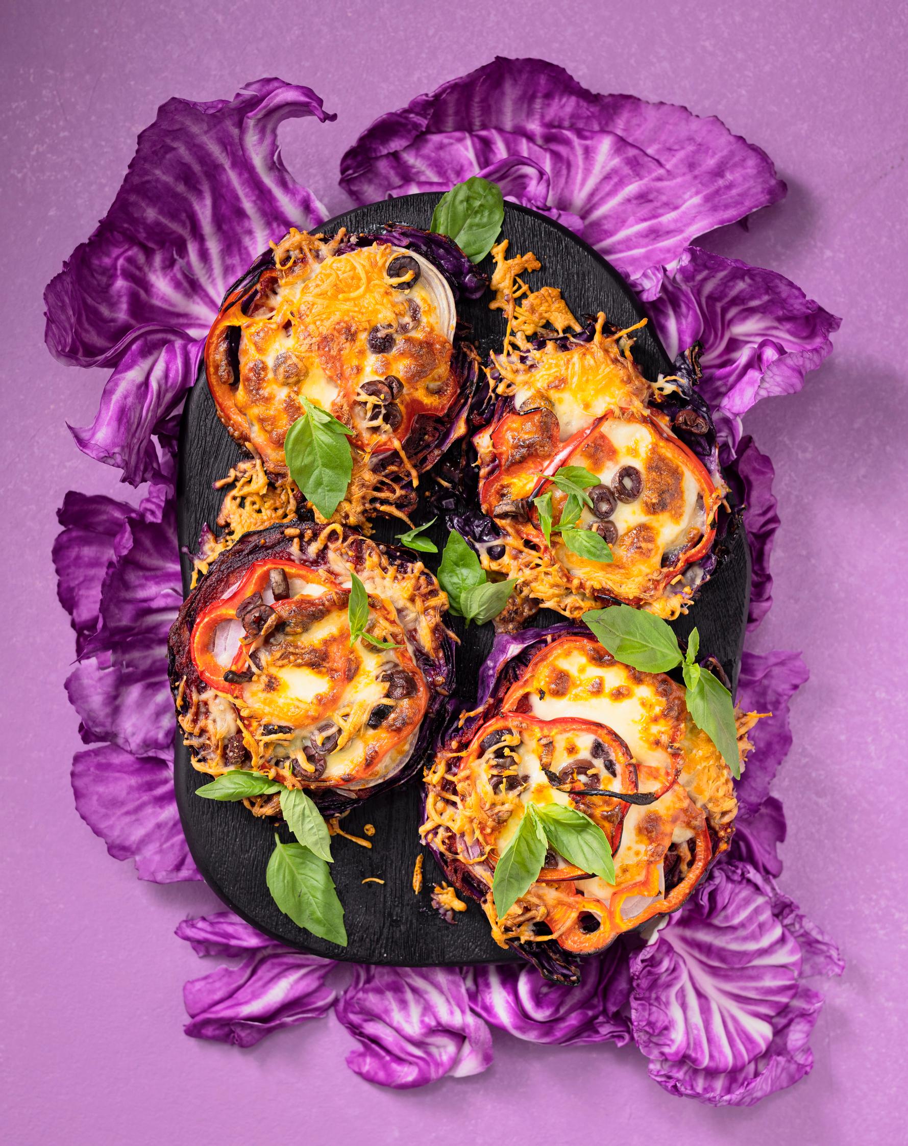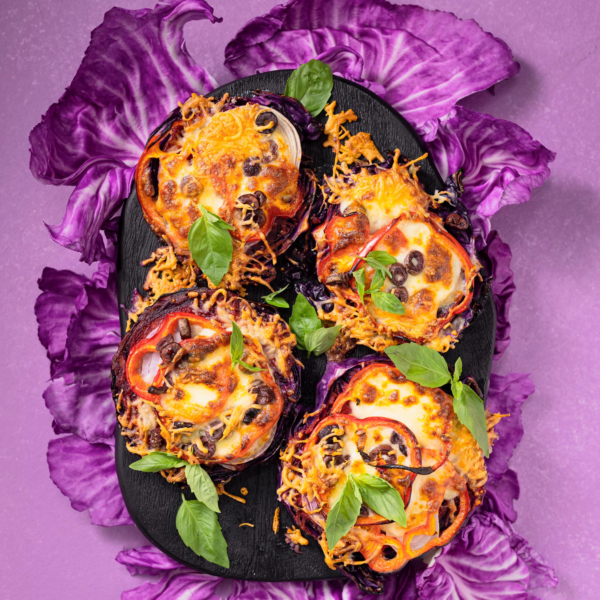 Sehän on kaalikiekkopizza! Ihastu pizzan veikeään versioon, jossa pohjana toimii punakaalisiivu