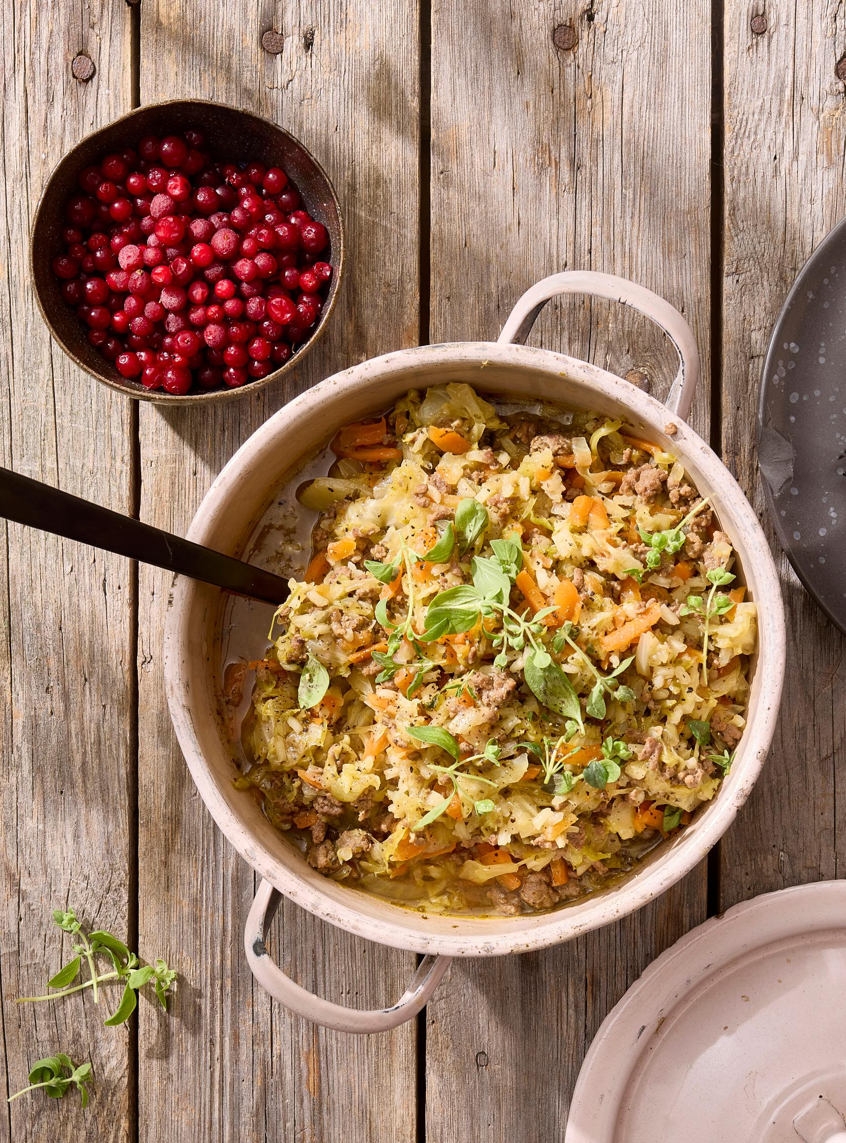 - Tarjoa kaalipata puolukkasurvoksen tai -hillon kanssa.