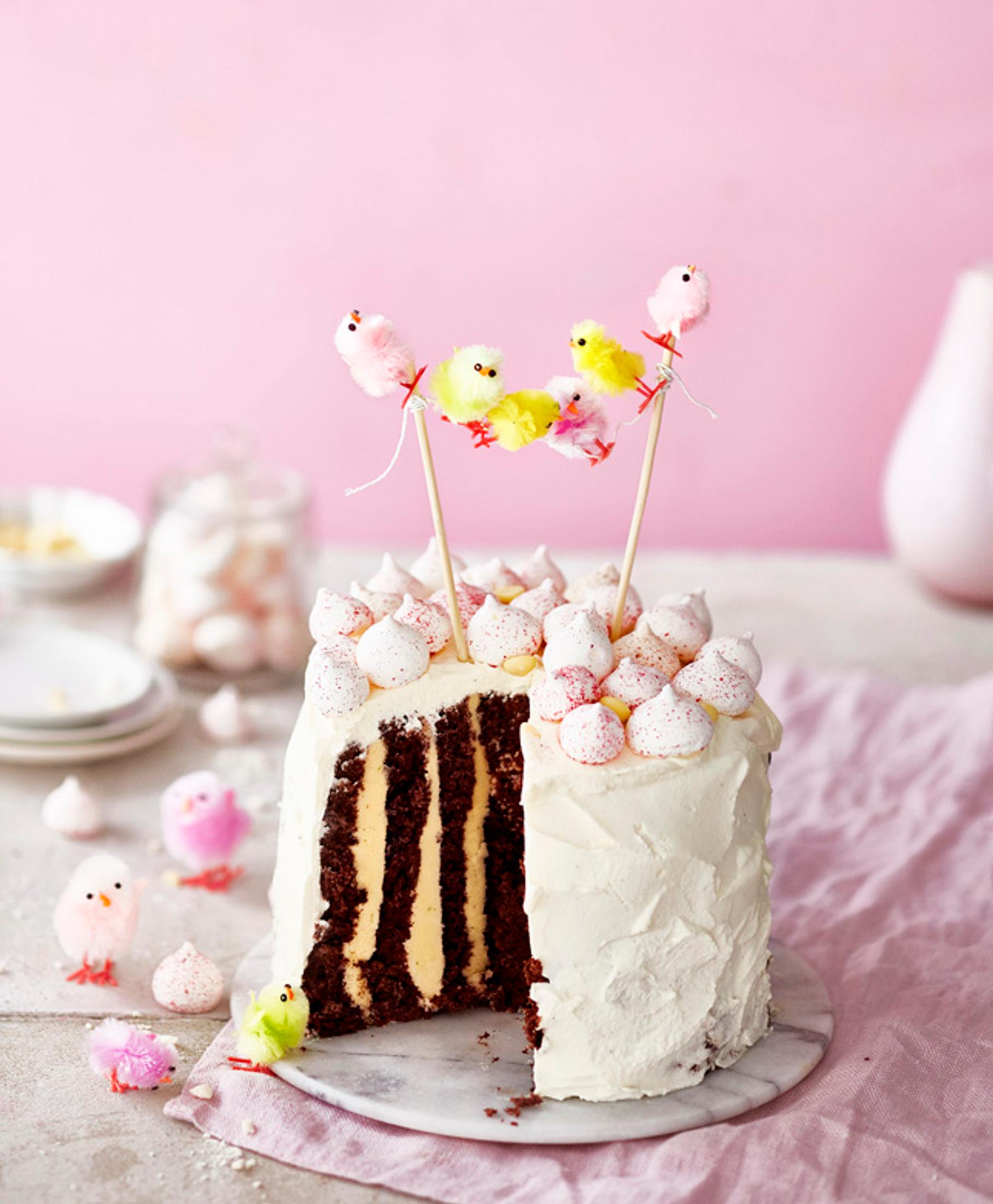 Jos aikaa on vähän mutta odotuksia paljon, kohauta tekemällä täytekakku pystyraidoin. Se valmistuu yllättävän helposti. Kakku on unelmakääretortun uhkeampi sisar. Kermavaahdon alla piileskelevät siis tutut maut. Koristele juhlien teemaan sopivasti.