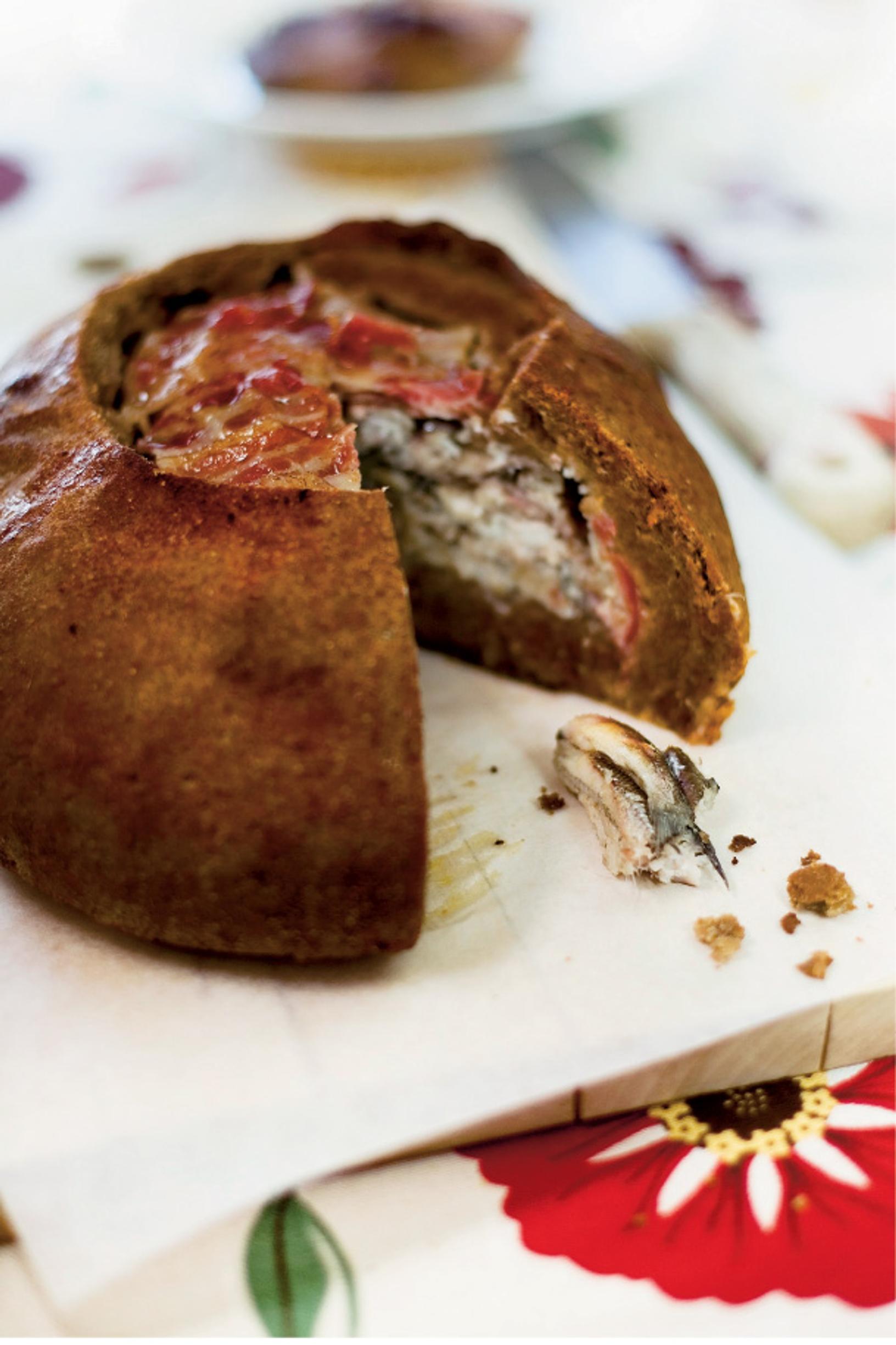 Kuivaa muikut talouspaperiin. Ripottele taikinalevyn keskelle 2 rkl ruisjauhoja ja asettele päälle kerros muikkuja. Ripottele muikuille suolaa ja pippuria ja asettele muikkujen päälle kerros siansivuviipaleita eli kastikelihaa.