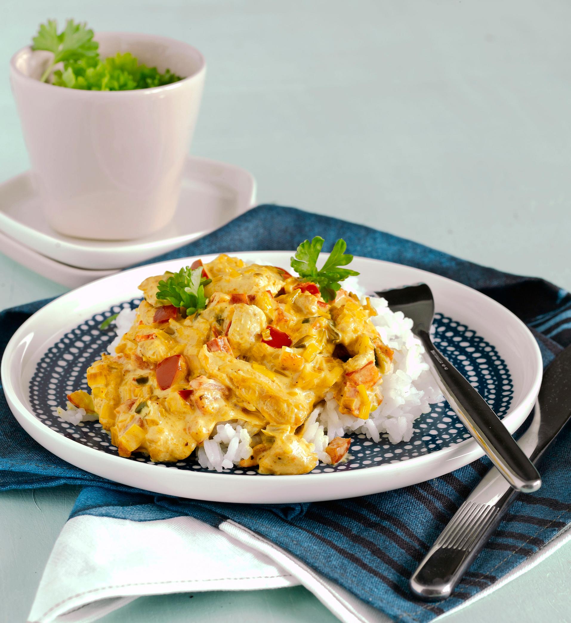 Kanakastike riisin kanssa on helppo lemppariruoka. Simppeli kanakastike saa makua ja väriä currysta ja paprikasta. Kokeile tätä!