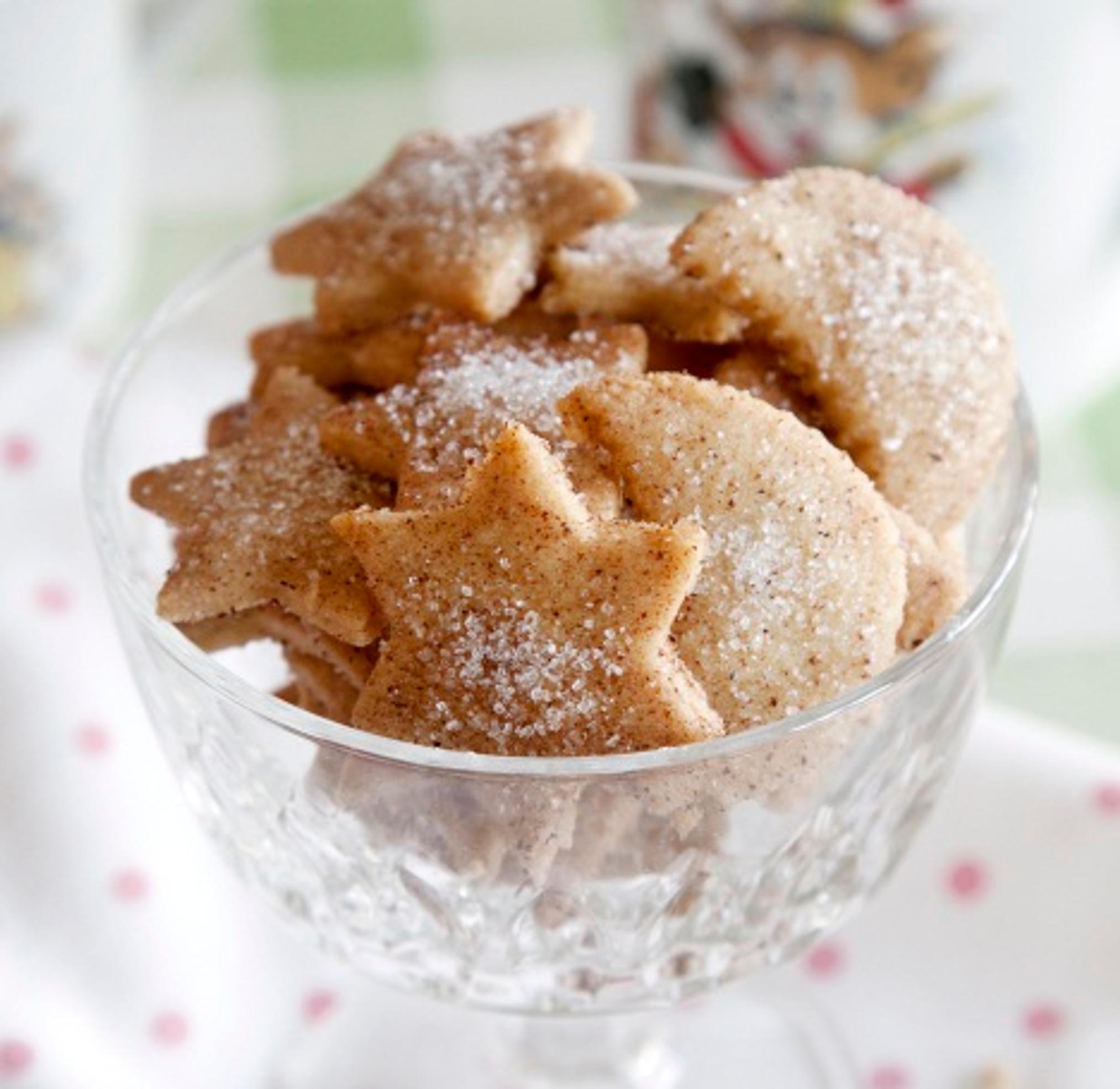 4. Ripottele kuvioiden pinnalle sokeria ja kanelia. Paista pikkuleipiä 180-asteisen uunin keskitasolla noin 10 minuuttia, kunnes ne ovat saaneet kauniin värin.