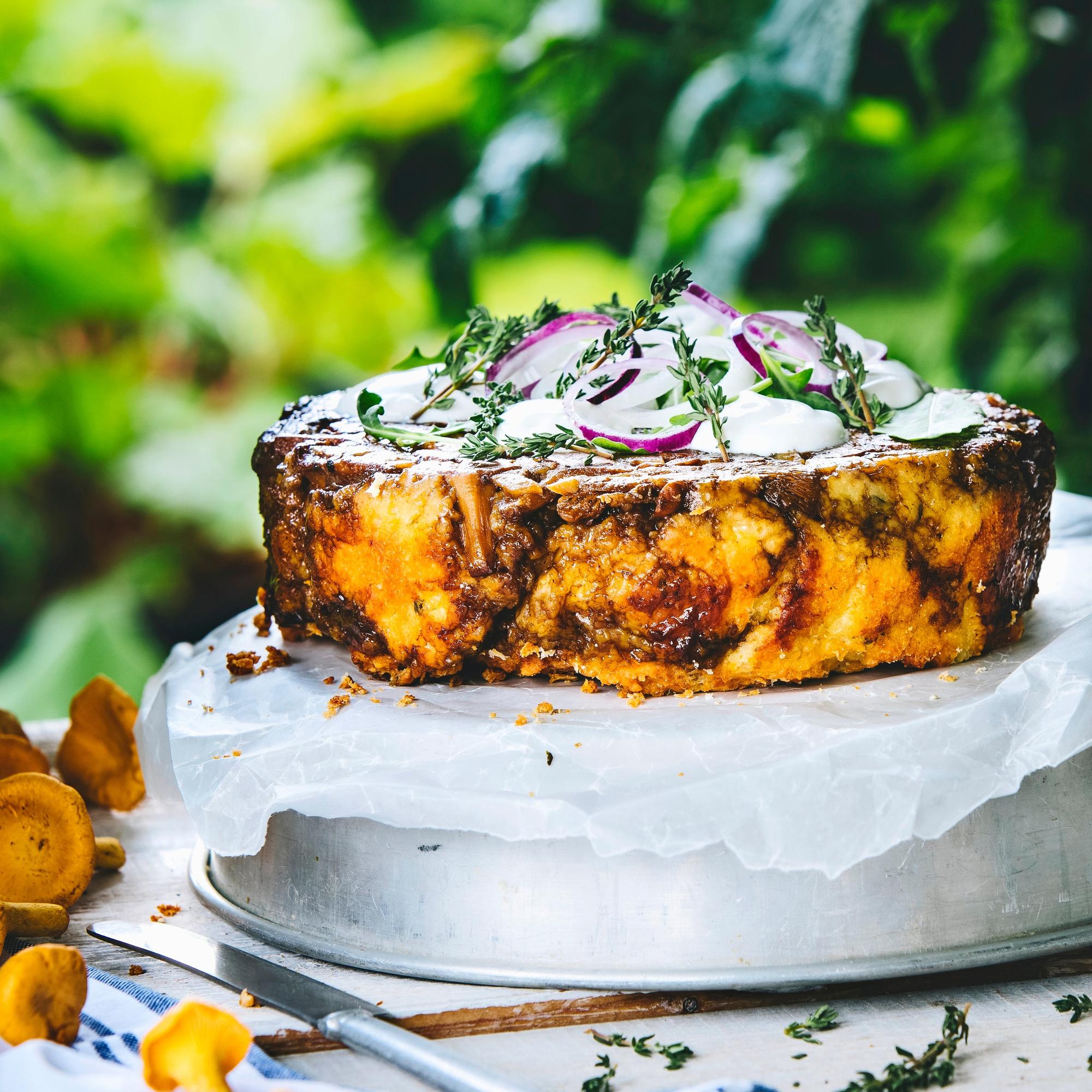 Kantarellikeikauskakku on syksyn ykköstarjottava – mehevän suolapalan aateloi hienostunut vuohenjuustomousse
