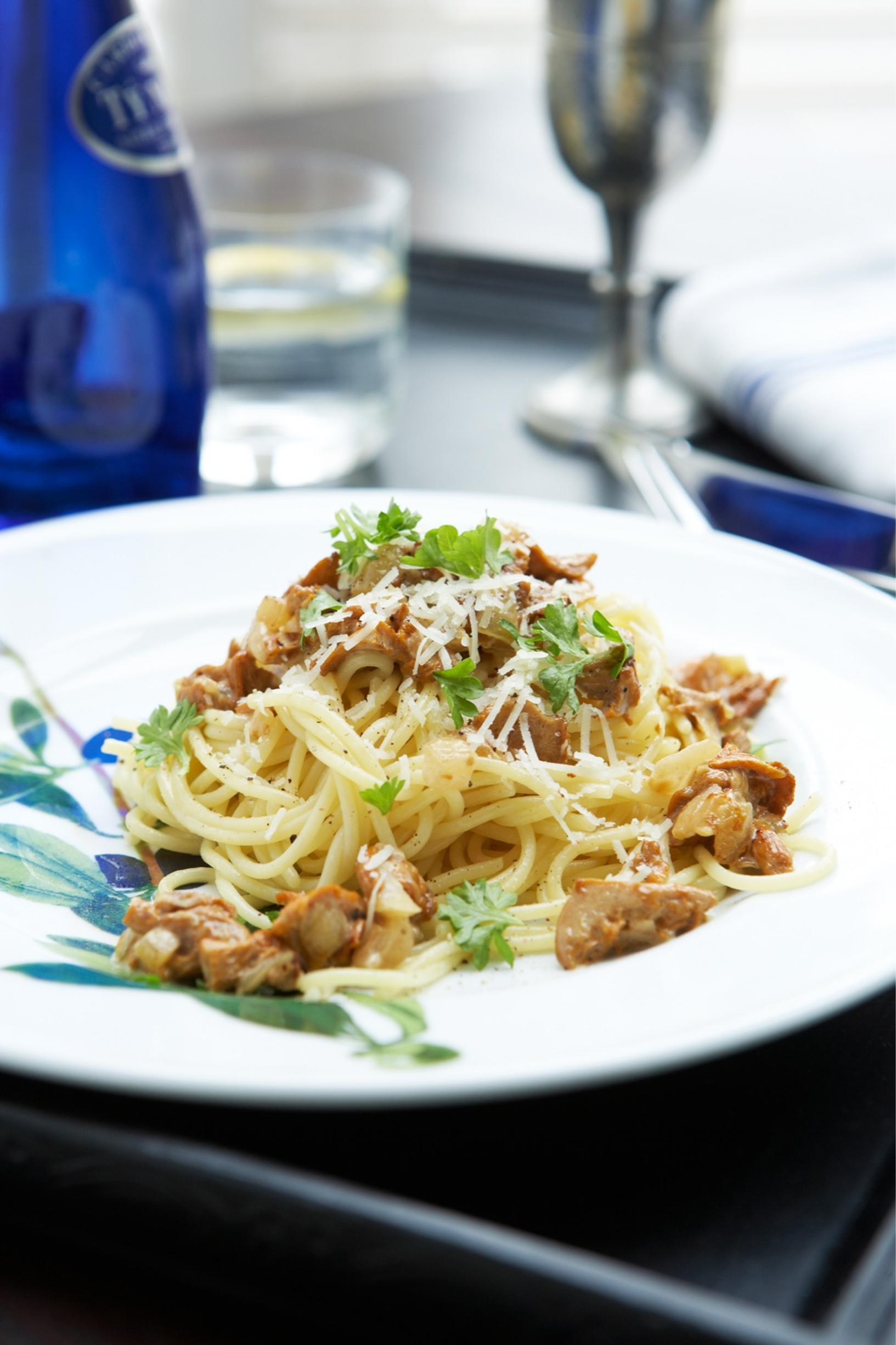 Kantarellipasta on kaunis ja herkullinen loppukesän ruoka. Kermainen kastike pyöristää kantarellien maun suuhun sopivaksi. Suosittelemme!