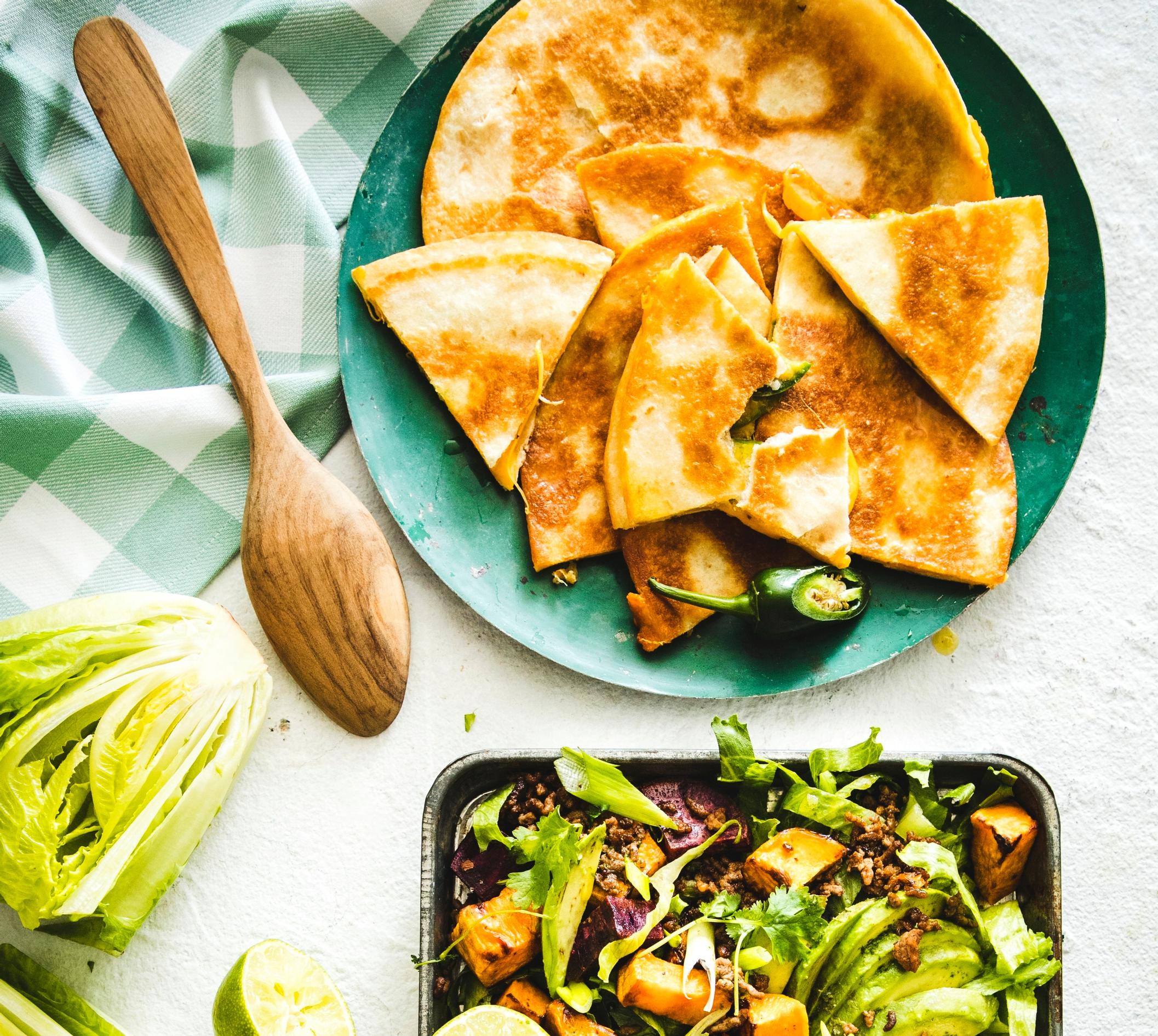 Tarjoa quesadillat lämpiminä meksikolaisen jauhelihasalaatin kanssa.
