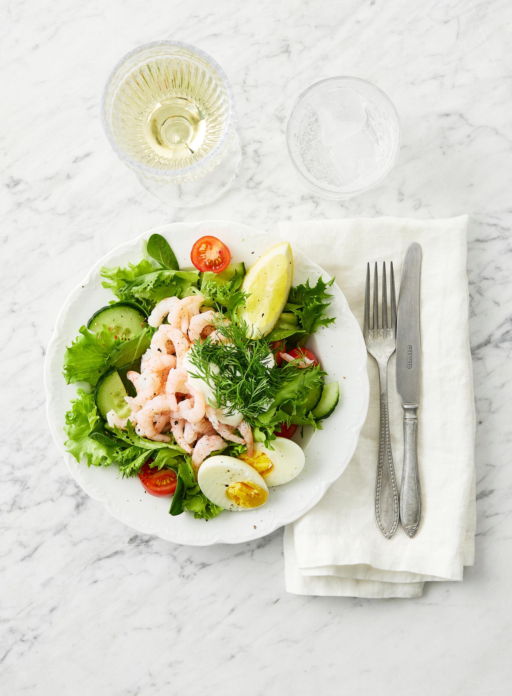 Katkarapusalaatti – kahviloista tuttu klassikko valmistuu helposti myös kotona