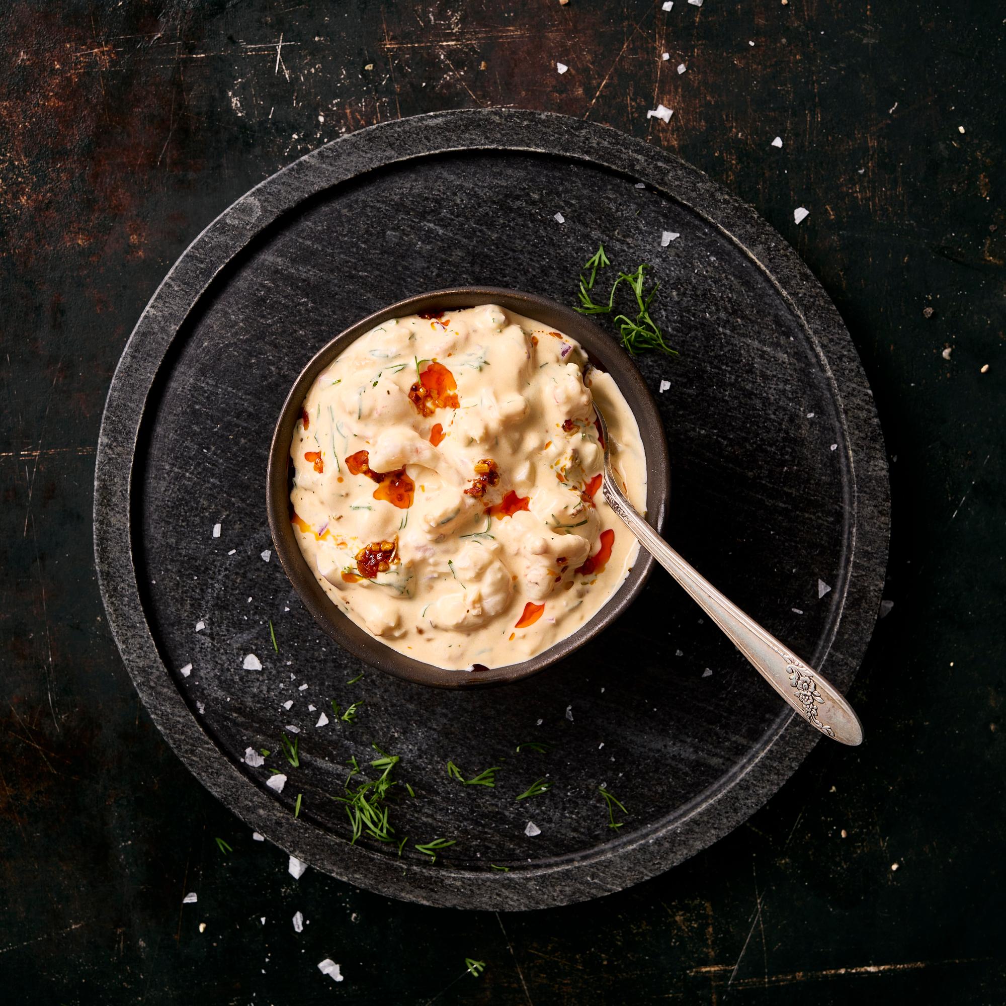 Perinteinen katkarapuskagen saa lisämakua rapeasta chilistä. Maukas tahna maistuu esimerkiksi uuniperunoiden kanssa.