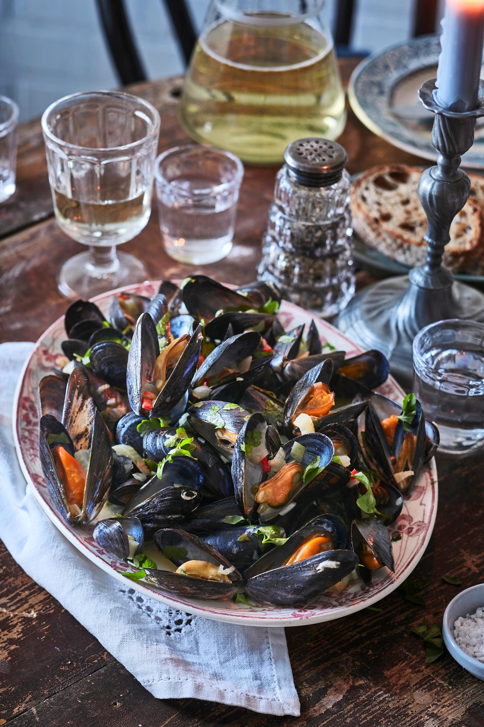 Moules Marinières eli merimiehen sinisimpukat on klassikkoruoka. Maukas liemi saa nyt makua ranskalaisesta siideristä valkoviinin sijaan. Siiderisimpukoiden lisukkeeksi sopivat esimerkiksi maalaisleipä ja perunat.