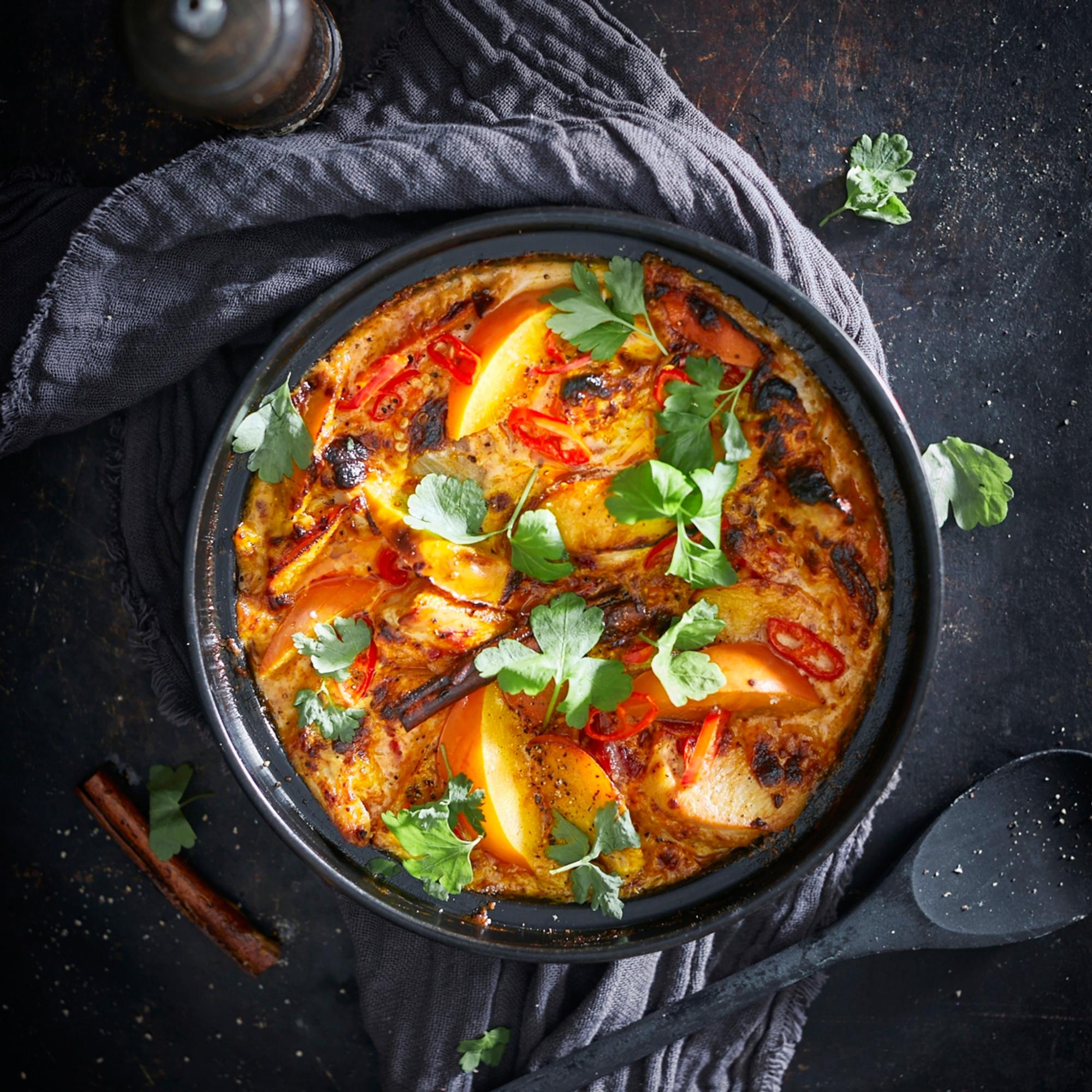 Broileripata uunissa – lämpöinen arkiruoka, joka rikastetaan persimonilla ja bataatilla