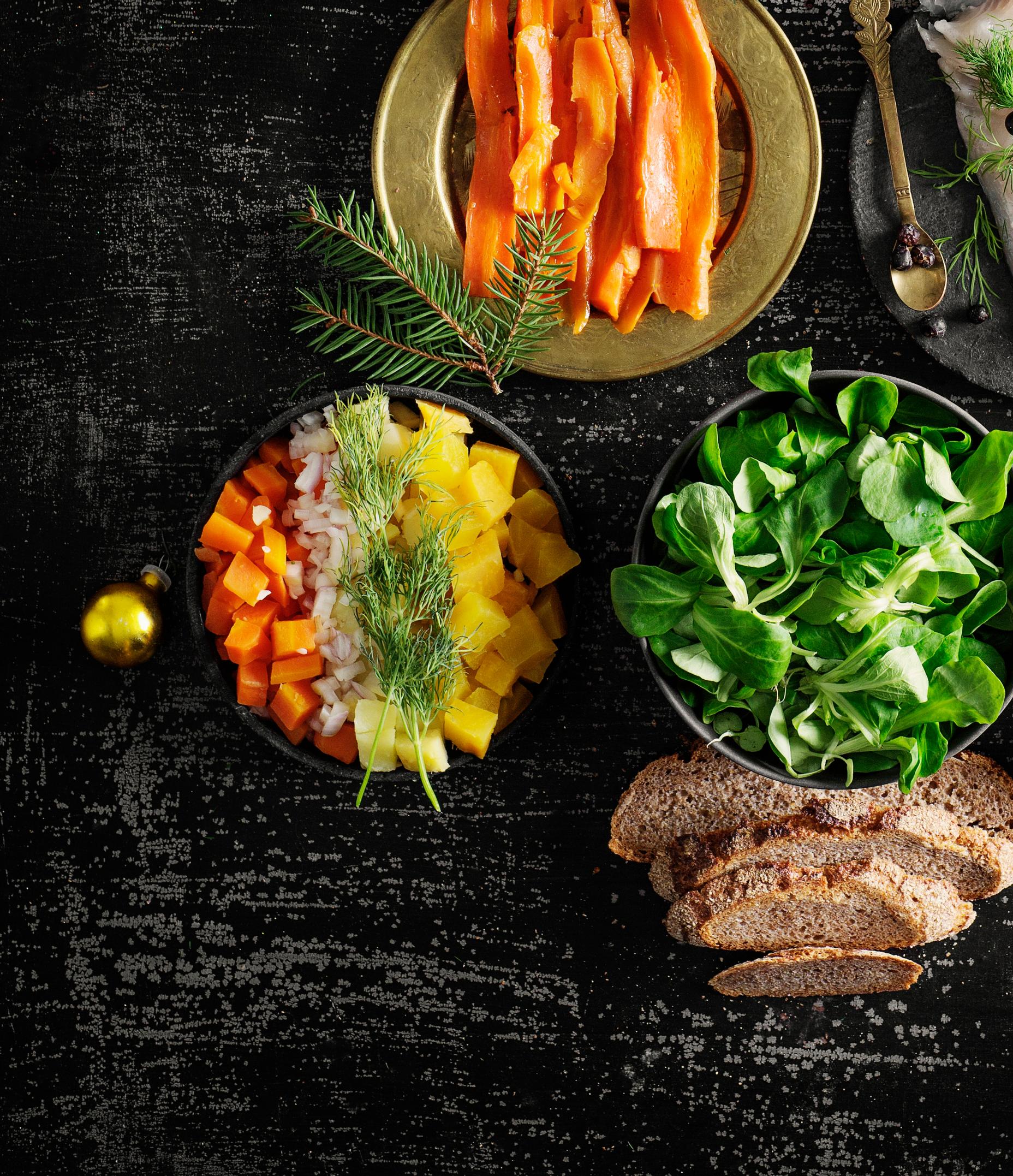 - Kuori ja kuutioi juurekset. Kuori ja hienonna sipuli. Kuutioi omena ja kurkku. Sekoita kaikki kasvikset keskenään tai laita tarjoiluastiaan raidoittain. Lisää halutessasi yrttisilppu.