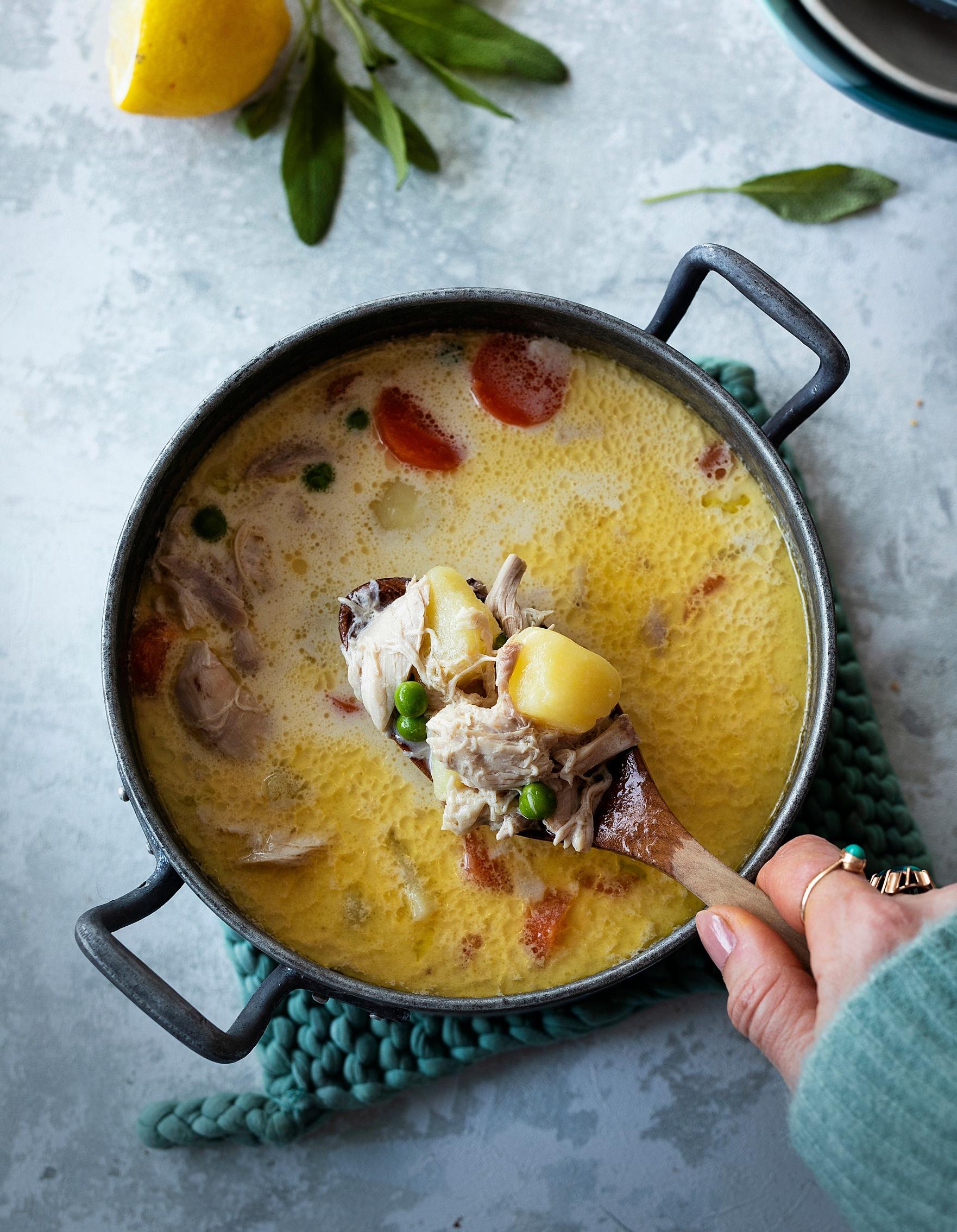 Kermainen kanakeitto – pehmeän täyteläinen & sitruunaisen raikas lempisoppa!