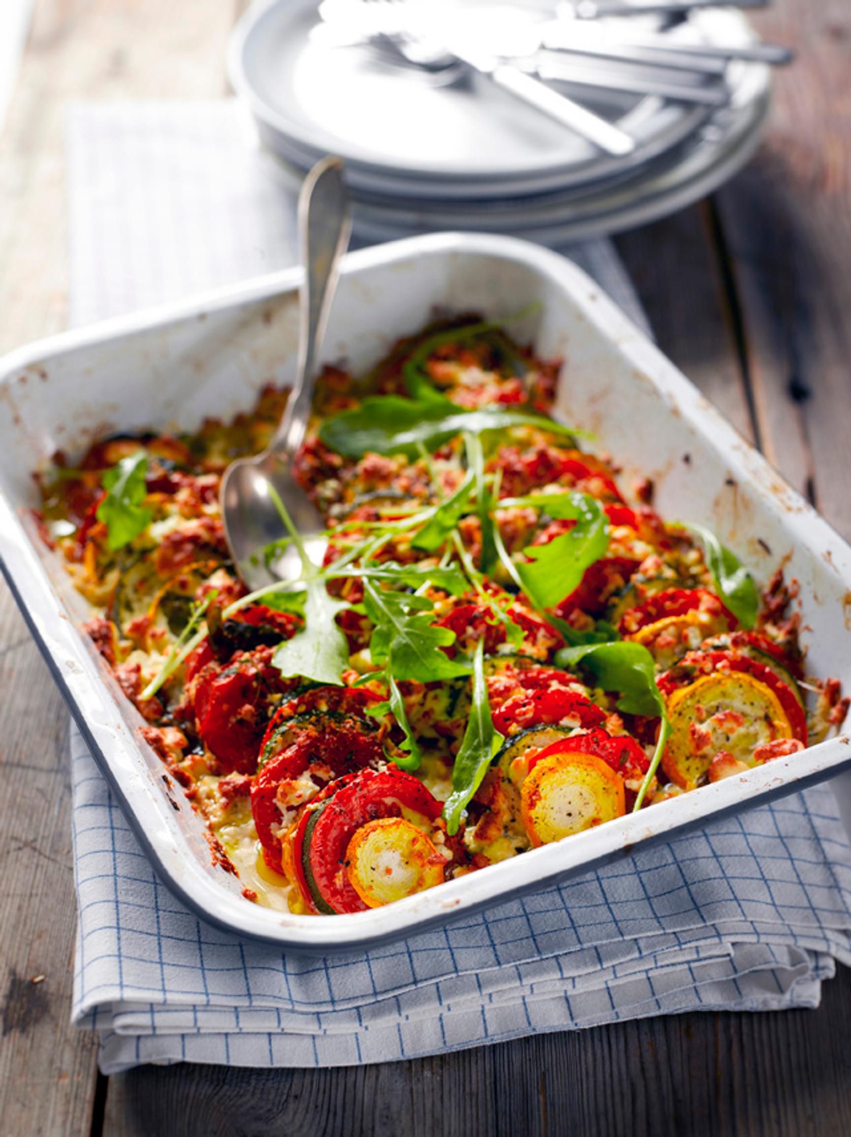 - Kypsennä 200-asteisen uunin alatasolla 30–40 minuuttia. Viimeistele kesäkurpitsapaistos rukolalla ja sitruunanmehulla. Nauti kesäkurpitsapaistos maalaisleivän kanssa lämpimänä tai hieman jäähtyneenä.