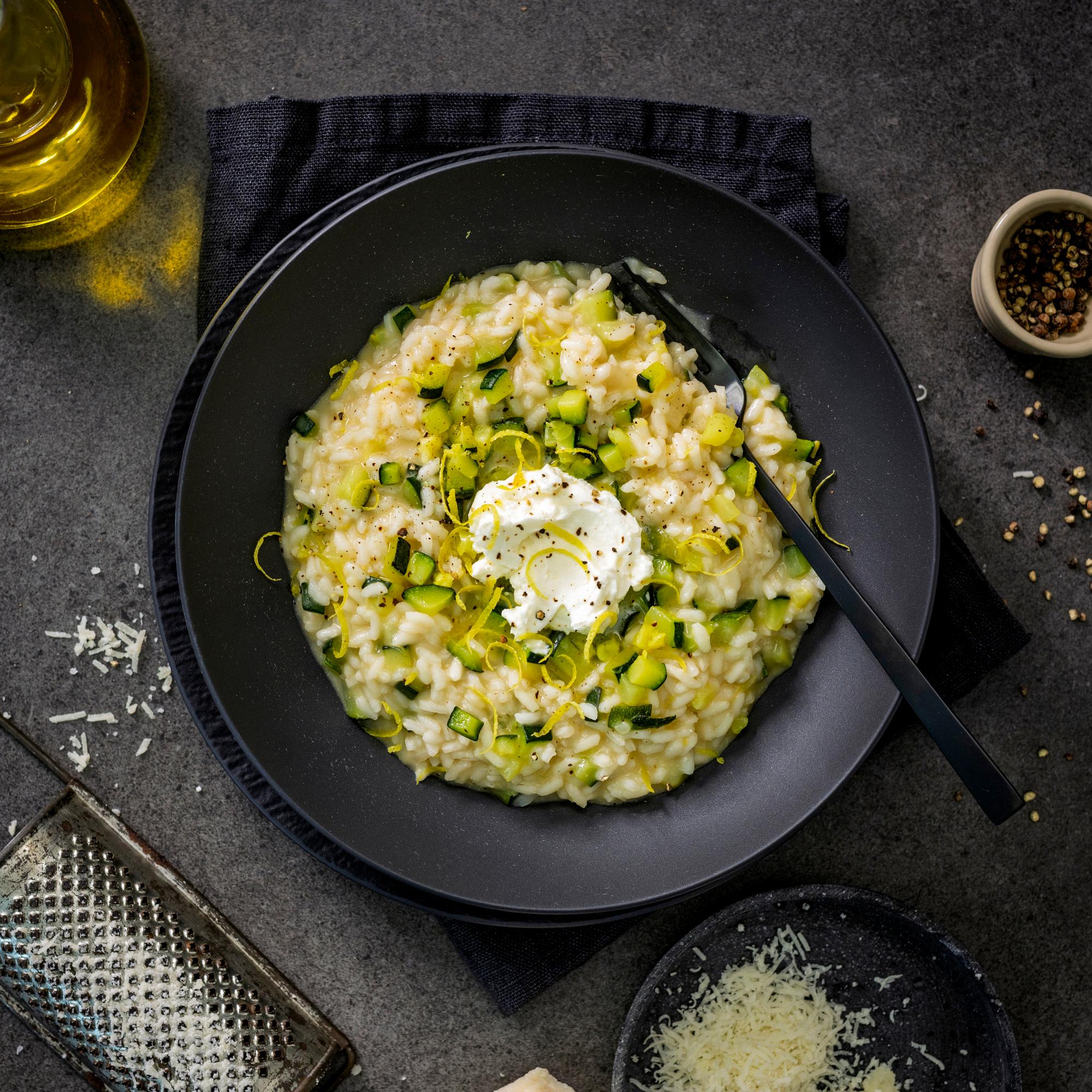 Kesäkurpitsarisotto on varma valinta niin alkupalaksi kuin pääruoaksi. Kesäkurpitsalla rikastettu perinteinen milanolainen risotto saa lisämakua sitruunanmehusta ja -kuoresta.