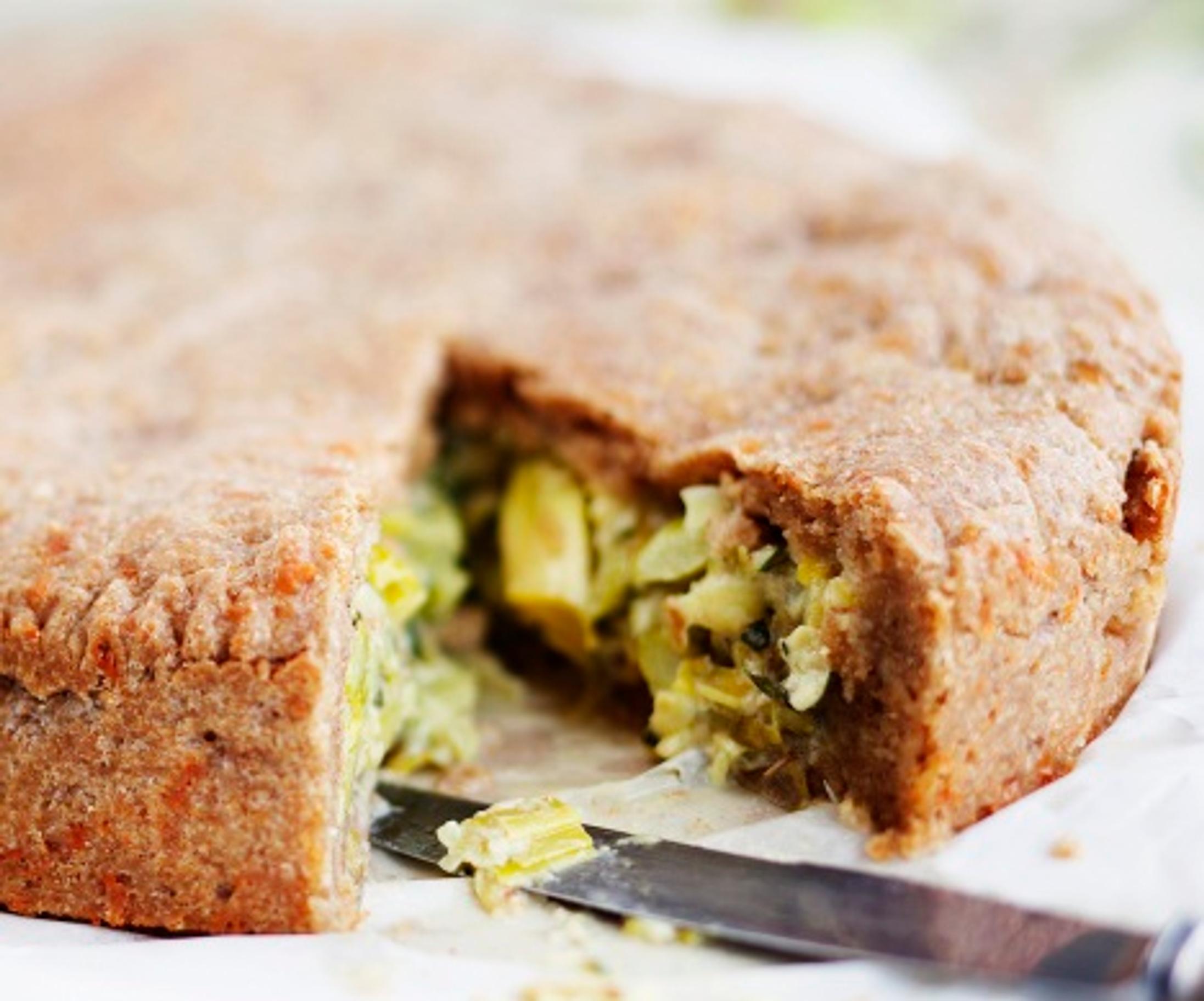 Tämä parsapiiras on ihanan keväinen ilmestys: sen täytteeseen tulee nippu parsaa, nippu kevätsipulia ja pieni nippu lipstikkaa.