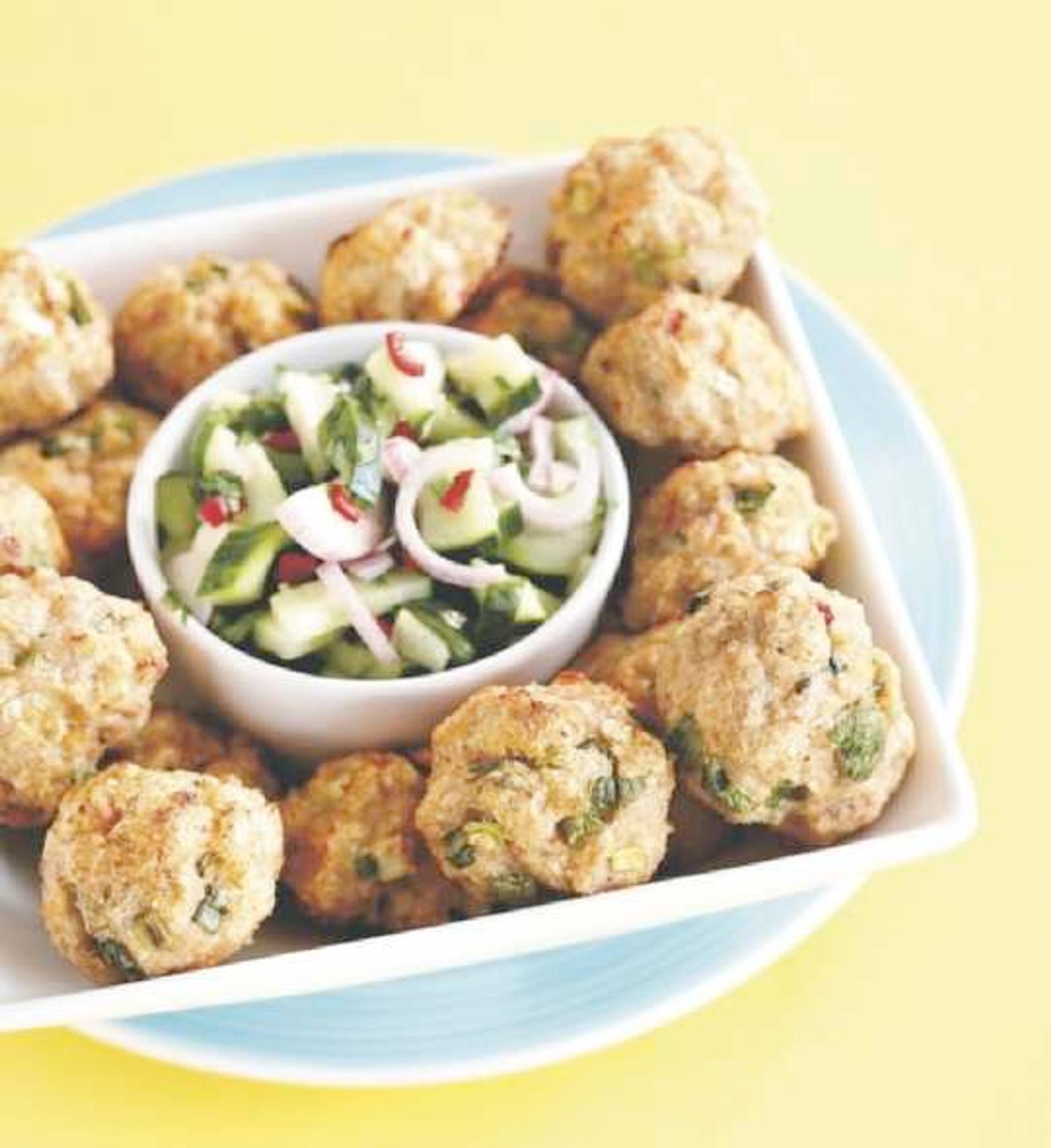 kevyet broileripyörykät ja thai-kurkkusalaatti