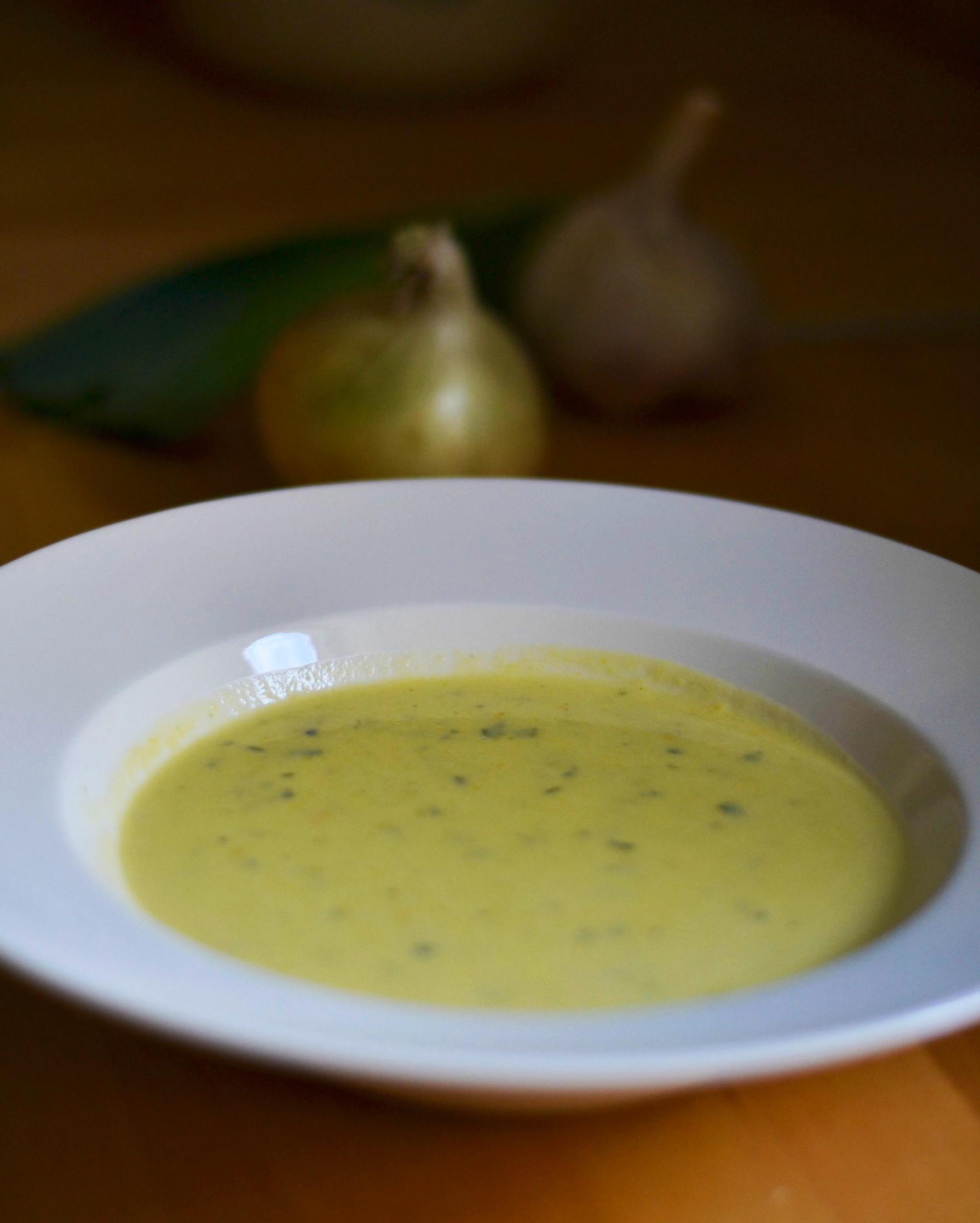 Kolmen sipulin kesäkurpitsakeitto